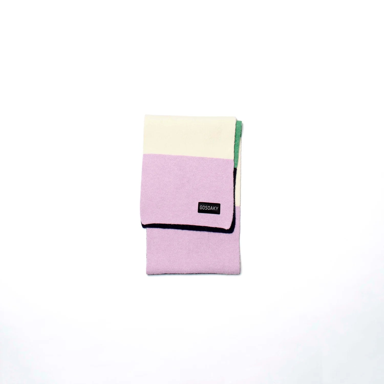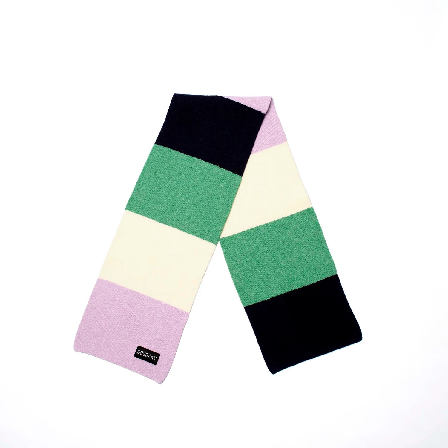 La bufanda Bull Parade de GOSOAKY llega en su versión más alegre con bloques de color en tonos lila, verde, crema y azul marino.