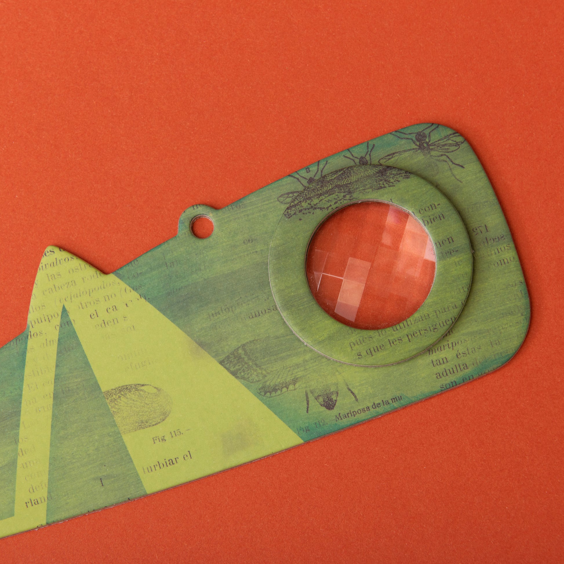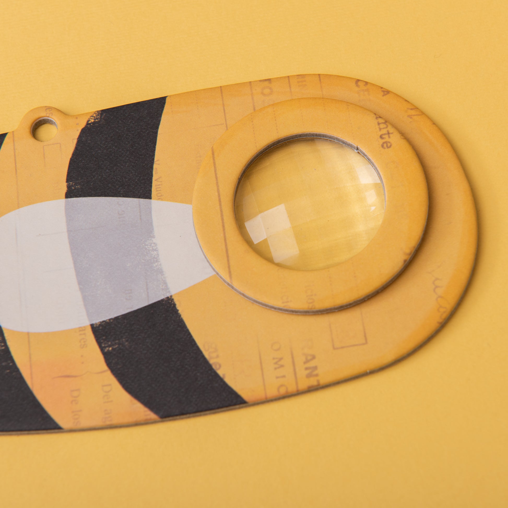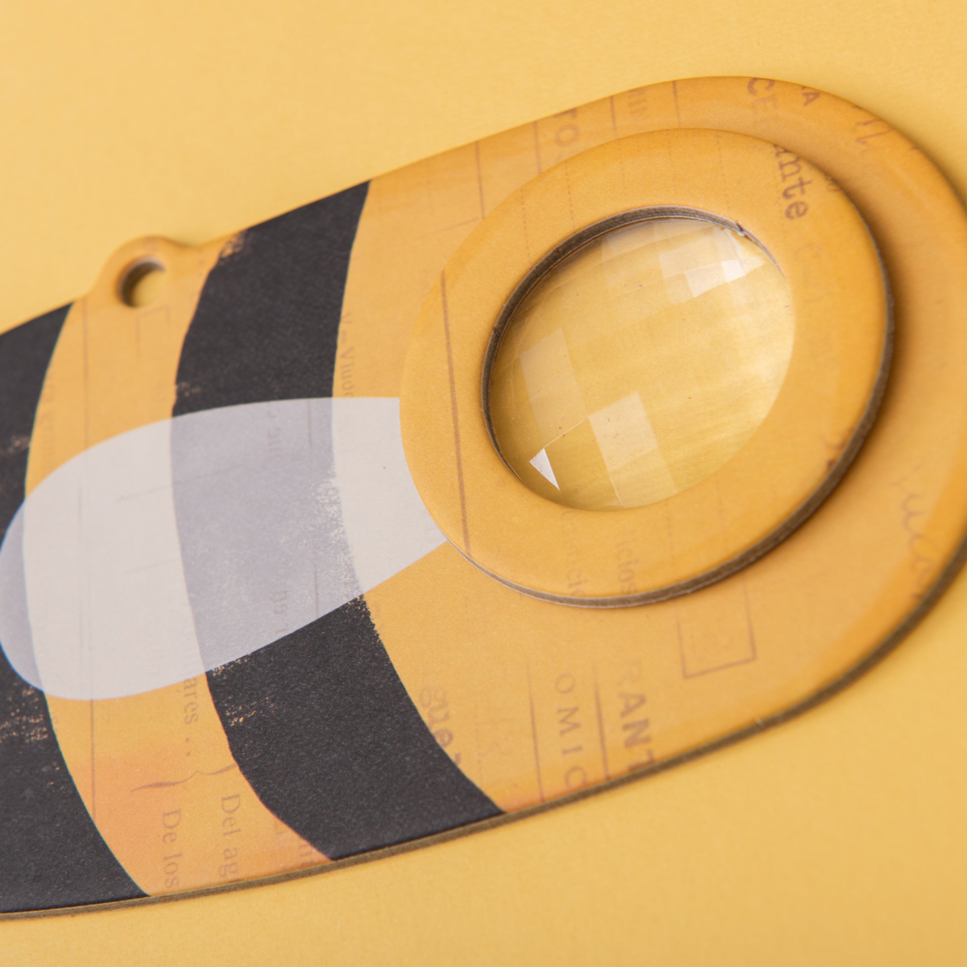 Material: cartón FSC + lente de cristal + plástico reciclable