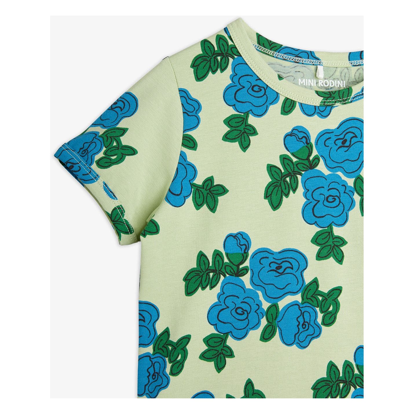 Camiseta de Manga Corta con Estampado de Rosas Azules – Verde | Mini Rodini