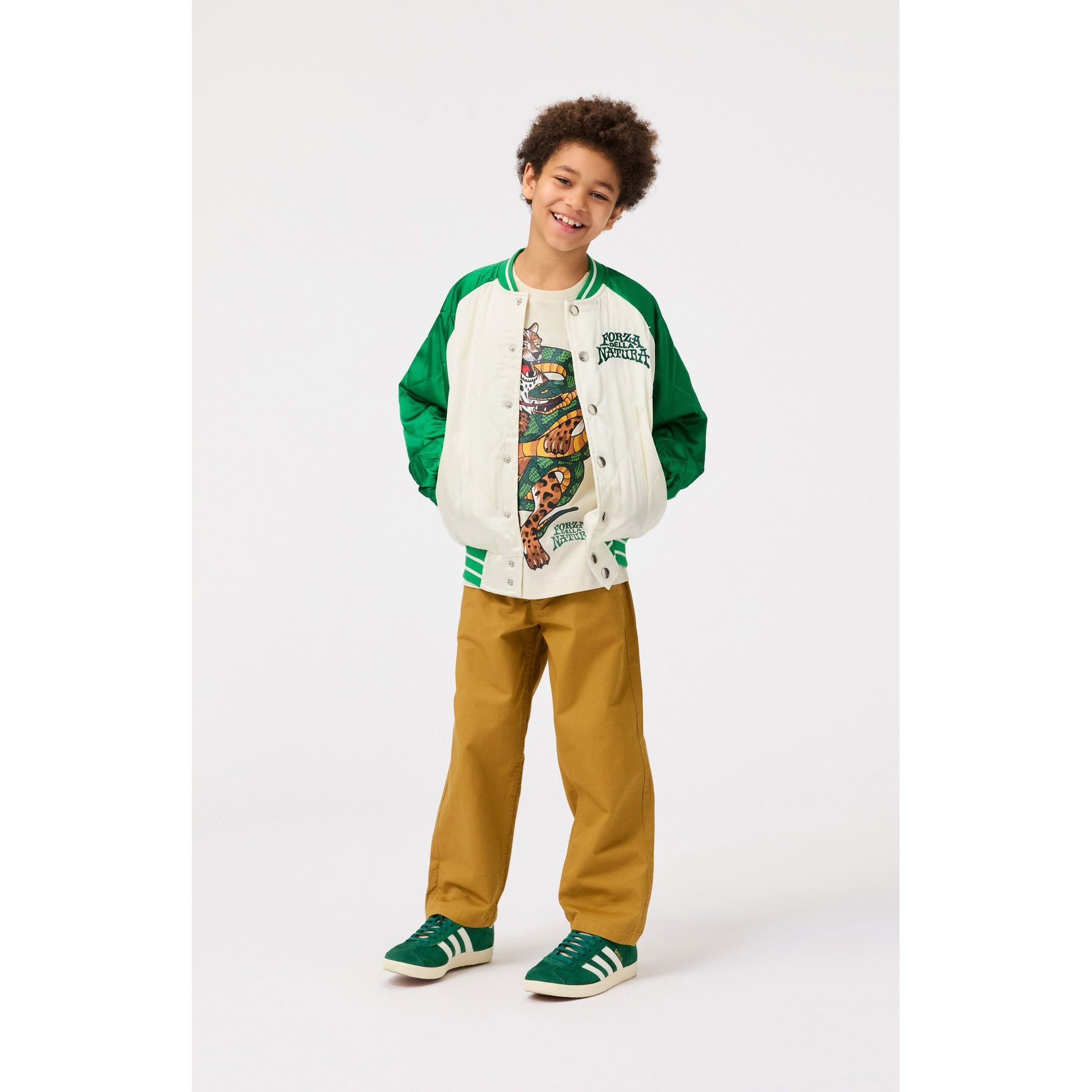 Enfréntate a la fuerza de la naturaleza con nuestra impactante camiseta “Jaguar vs Snake” de Molo. Confeccionada en 100 % algodón orgánico certificado GOTS, luce un estampado frontal vibrante donde un jaguar y una serpiente se enredan en un ilustración de gran dinamismo. Perfecta para pequeños amantes de la fauna salvaje y el diseño audaz.