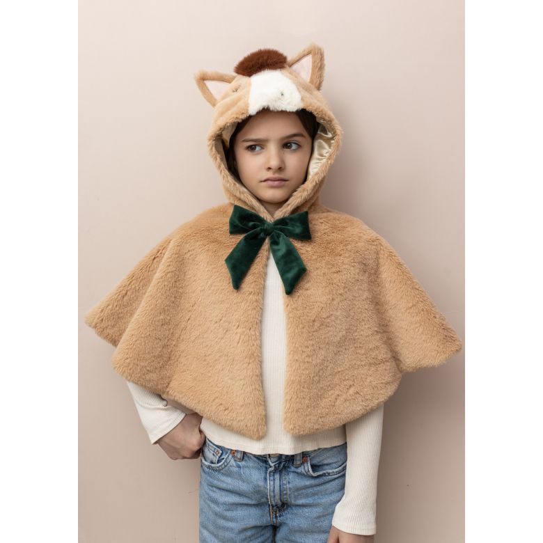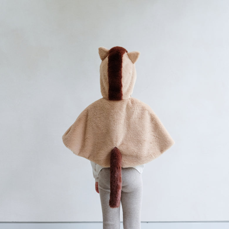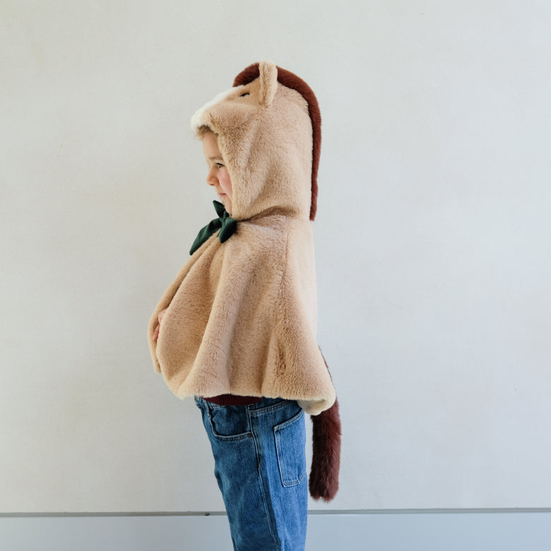 Diversión asegurada con esta capa de caballo de Mimi & Lula. Hecha en un tejido suave y esponjoso, con capucha que simula la carita del caballo, orejas, melena y cola, es el disfraz perfecto para dejar volar la imaginación. Su lazo verde aterciopelado le da un toque elegante y encantador. Ideal para fiestas, carnaval o tardes de juego en casa.