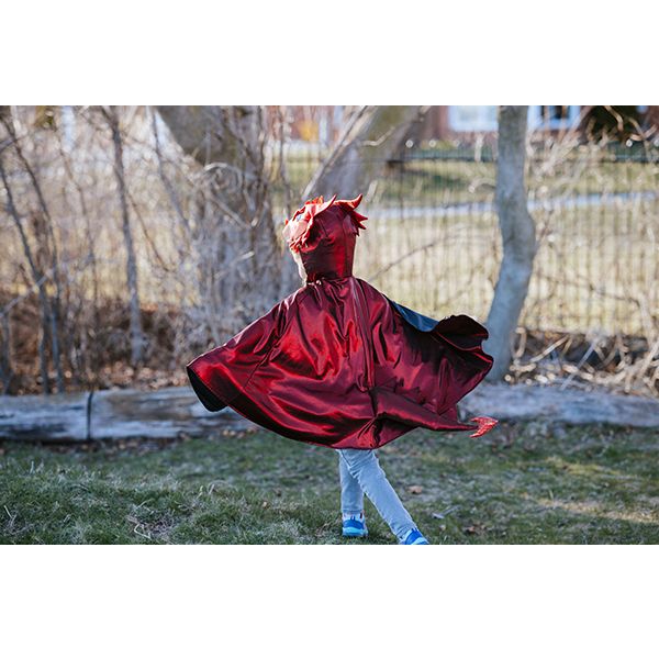 Conviértete en un auténtico dragón escupefuego con esta impresionante capa roja de Great Pretenders. Su tejido brillante, la capucha con cabeza de dragón y la cola con punta en forma de flecha hacen que cada movimiento parezca magia pura. Ligera, cómoda y muy fácil de poner, es ideal para juego simbólico, disfraces y aventuras épicas dentro y fuera de casa.
