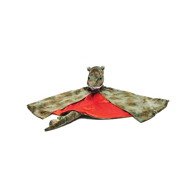 Gran capucha con forma de cabeza de T-Rex, dientes acolchados y ojos expresivos.