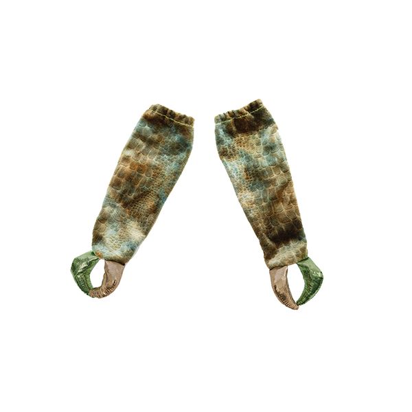 Incluye dos cubre-brazos en forma de garras con aberturas para los pulgares.