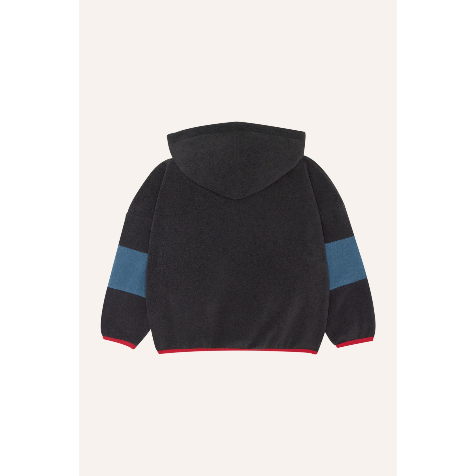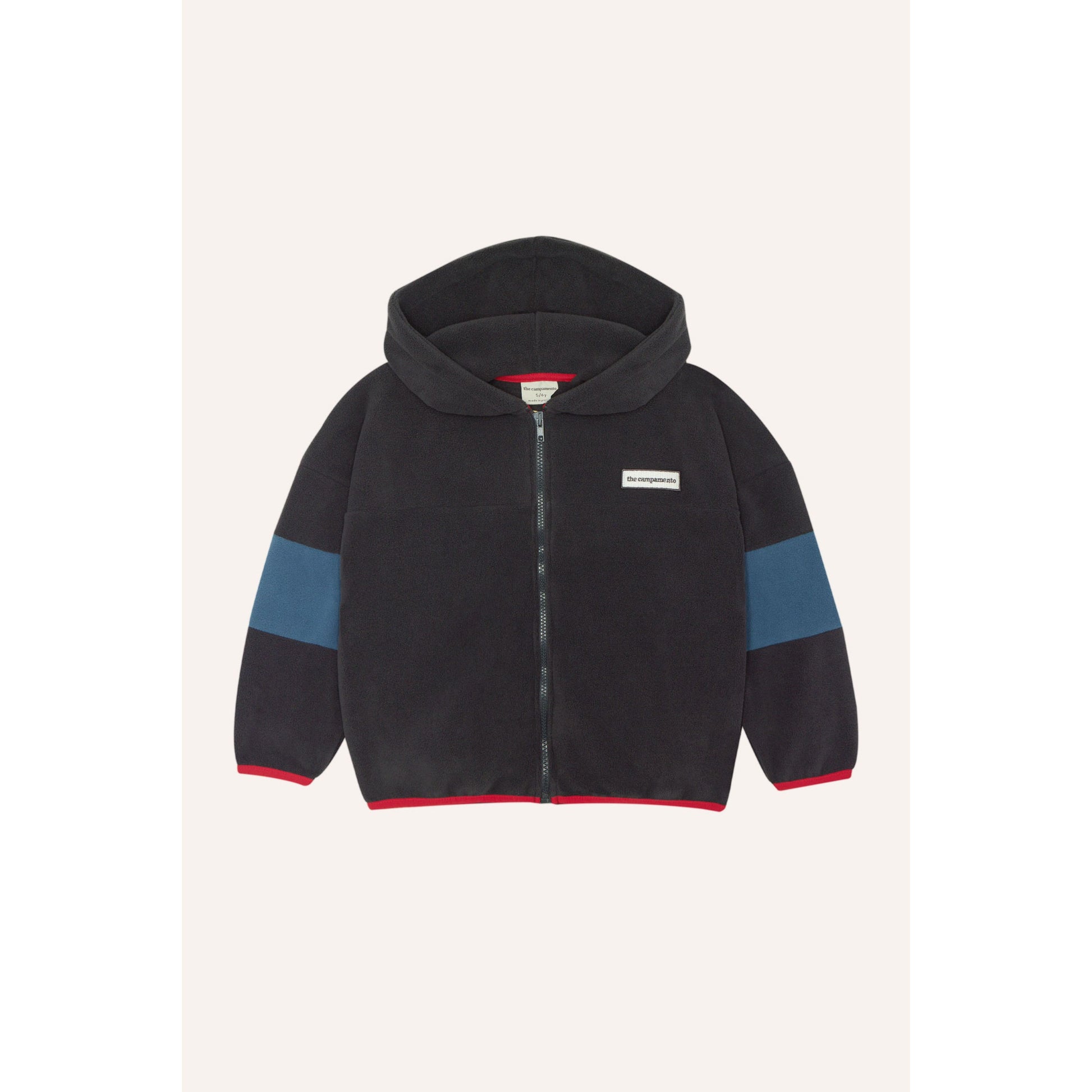 La aliada perfecta para los días fríos. Esta cazadora con cremallera está confeccionada en tejido polar suave y cálido, con capucha y un diseño deportivo que combina funcionalidad y estilo. El contraste de colores en las mangas y los ribetes rojos le da un toque muy especial.