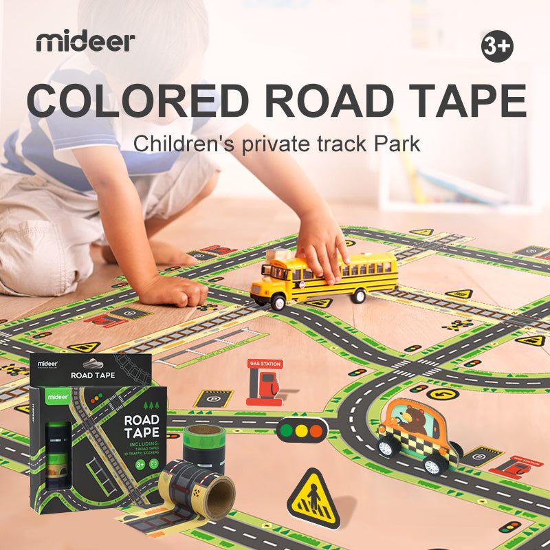 Con este creativo set de Mideer Road Tape, los peques pueden transformar cualquier superficie plana —piso, pared o mesa— en una ciudad personalizable. Incluye dos rollos de cinta adhesiva con diseño de carretera y vías férreas, junto a pegatinas de señales de tráfico. Permite diseñar calles, carreteras, cruces y circuitos para coches y trenes, fomentando el juego imaginativo, la coordinación y el aprendizaje de normas viales. Su adhesivo es resistente pero fácil de retirar sin dejar residuos.