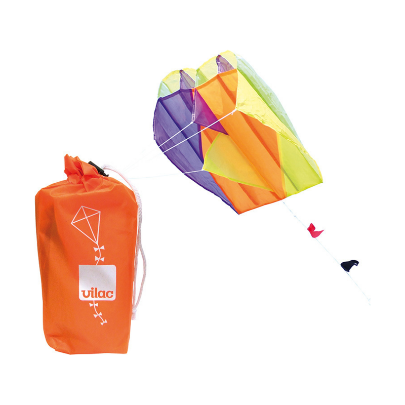 Lleva la magia de los colores al cielo con esta cometa de cinco celdas de Vilac. Disponible en naranja, azul y rosa, cada una luce un degradado estilo arcoíris que se infla con el viento para elevarse con estabilidad y suavidad. Se pliega en un estuche compacto, ¡perfecta para aventuras al aire libre en familia!