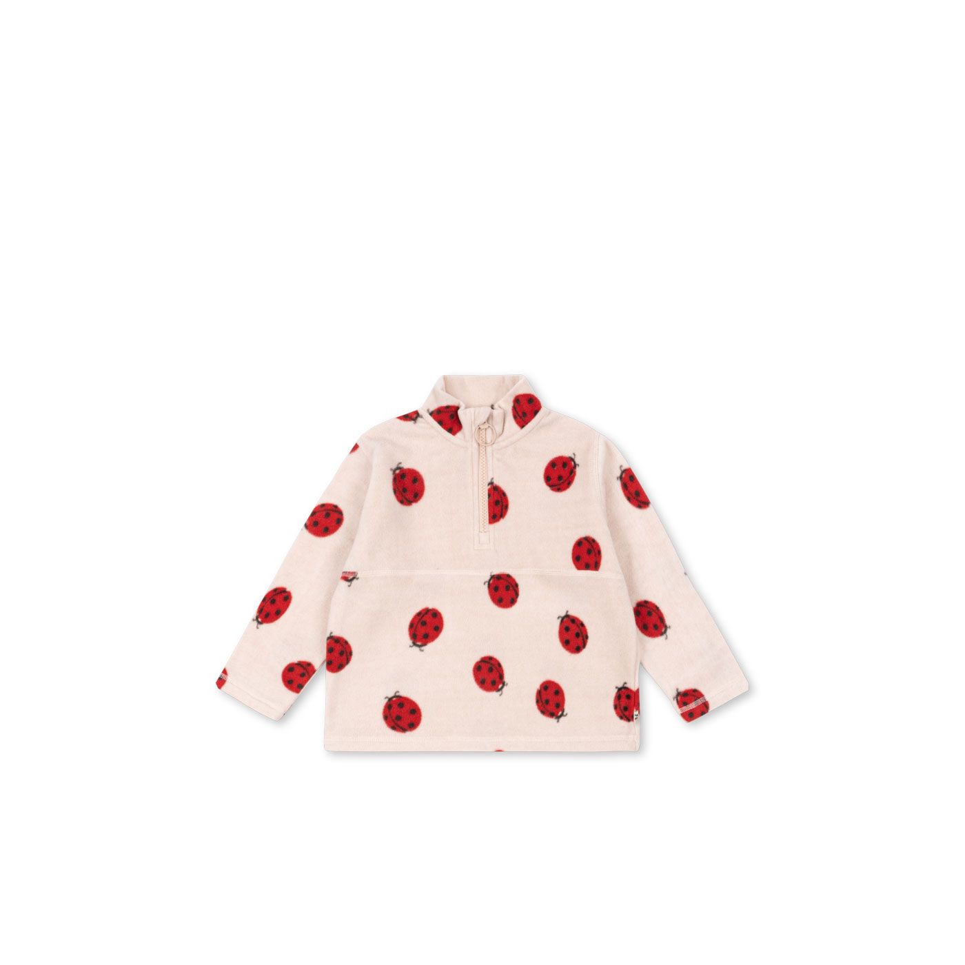 Un abrigo suave como un abrazo y con tanto encanto como una historia de bichitos. Este forro polar de Konges Sløjd, en tono crema con mariquitas rojas estampadas, es la prenda ideal para acompañar a los peques en sus aventuras otoñales o invernales. Con media cremallera y cuello alzado, ofrece abrigo sin perder la comodidad ni el estilo lúdico que tanto nos gusta.