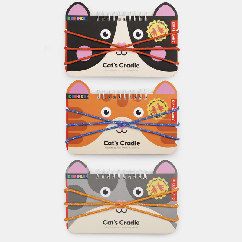 Este clásico juego de manos incluye un libro-álbum con 10 fichas ilustradas y cuerda de algodón para aprender y dominar todos los trucos de “Cat’s Cradle”. Cada cuaderno está diseñado con una simpática carita de gato, haciendo el juego todavía más atractivo y fácil de llevar.