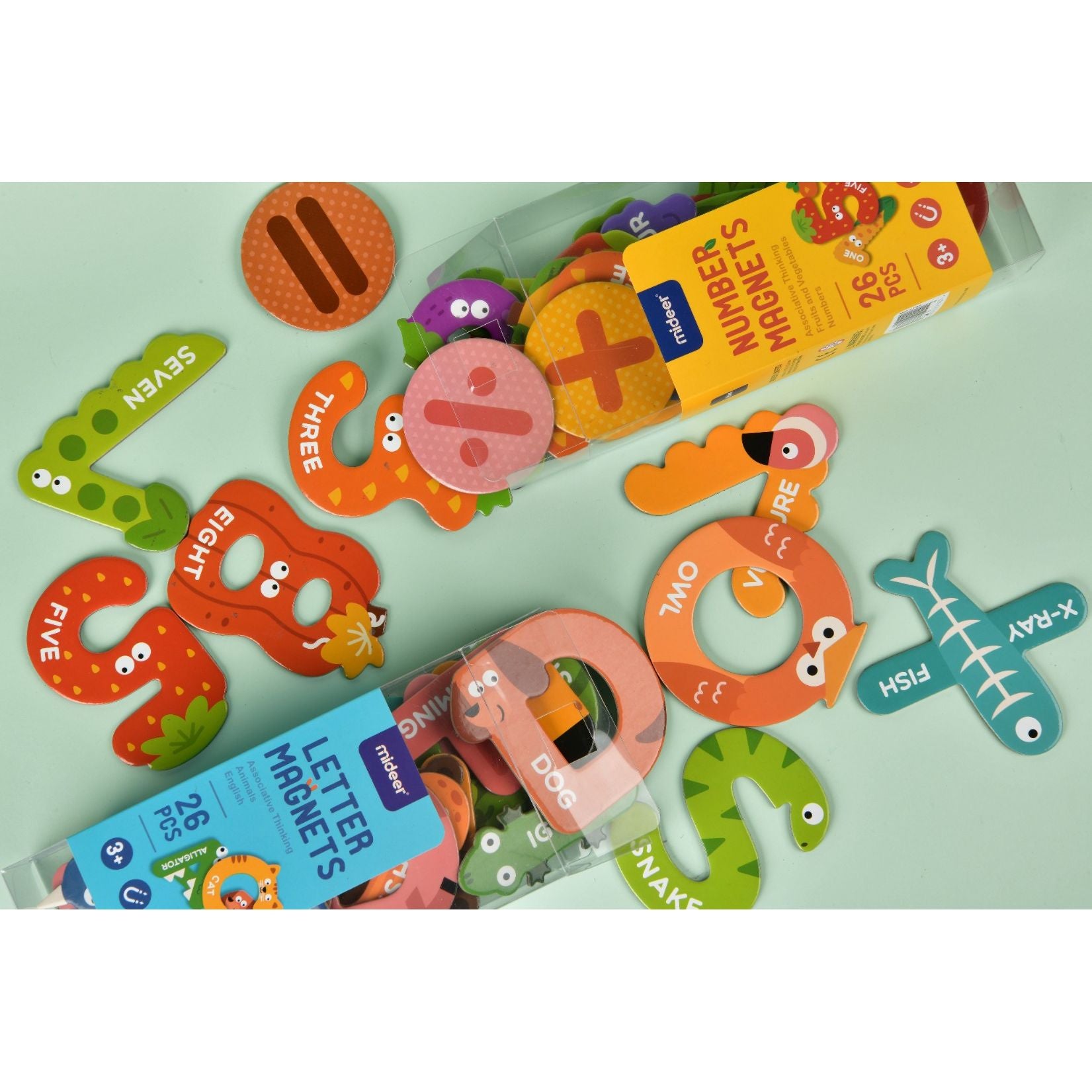Aprende el alfabeto mientras juegas con este set de 26 imanes de Mideer, cada uno representando una letra en forma de simpático animal. Diseñados para atraer la atención de los más pequeños, estos imanes combinan diversión y educación al asociar cada carácter con su nombre en inglés. Ideales para pizarras magnéticas, puertas de nevera o cualquier superficie metálica, fomentan el reconocimiento de letras, palabras y el desarrollo del vocabulario.