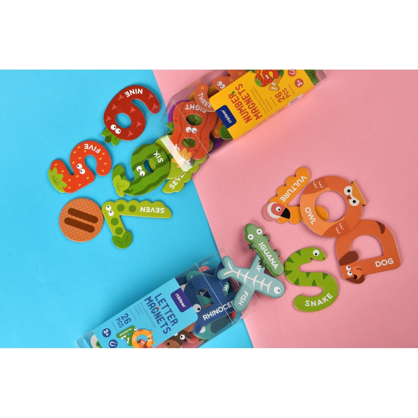 ¡Descubre el mundo de los números de forma interactiva! Este set de 10 imanes de Mideer incluye las cifras del 0 al 9, cada una representada con su forma geométrica y la palabra impresa en inglés. Perfectos para introducir a los niños en el conteo, la comunicación de cantidades y el reconocimiento numérico sobre cualquier superficie metálica: pizarras, frigoríficos o armarios de aula.