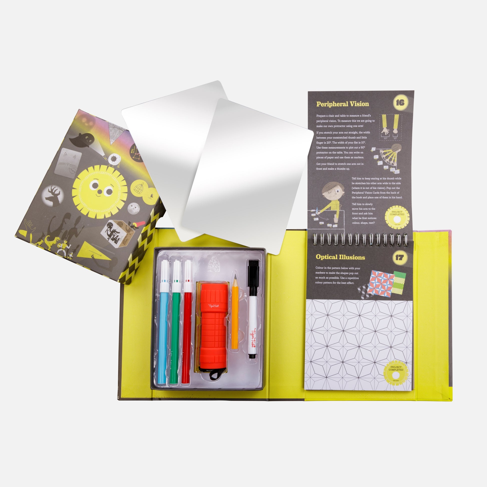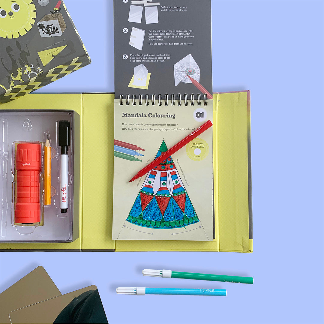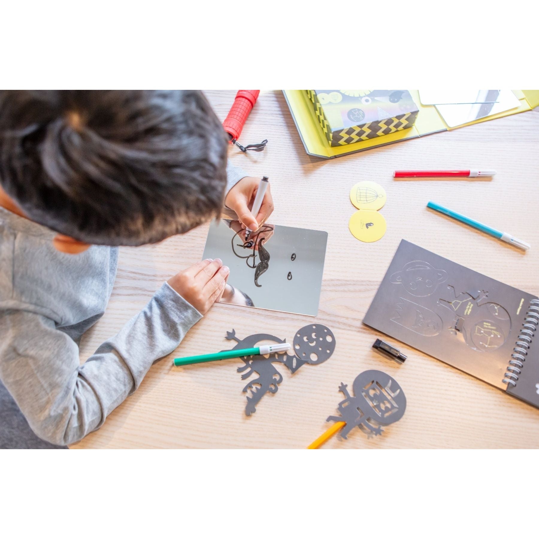 El Juego de Luz y Brillo de Tiger Tribe es un kit de aventuras ópticas que combina una potente linterna de mano con proyectos para descubrir la magia de la luz: sombras, refracciones, proyecciones y efectos caleidoscópicos. Con 26 actividades guiadas, este set invita a los niños a experimentar y aprender conceptos de física de una forma lúdica y creativa.