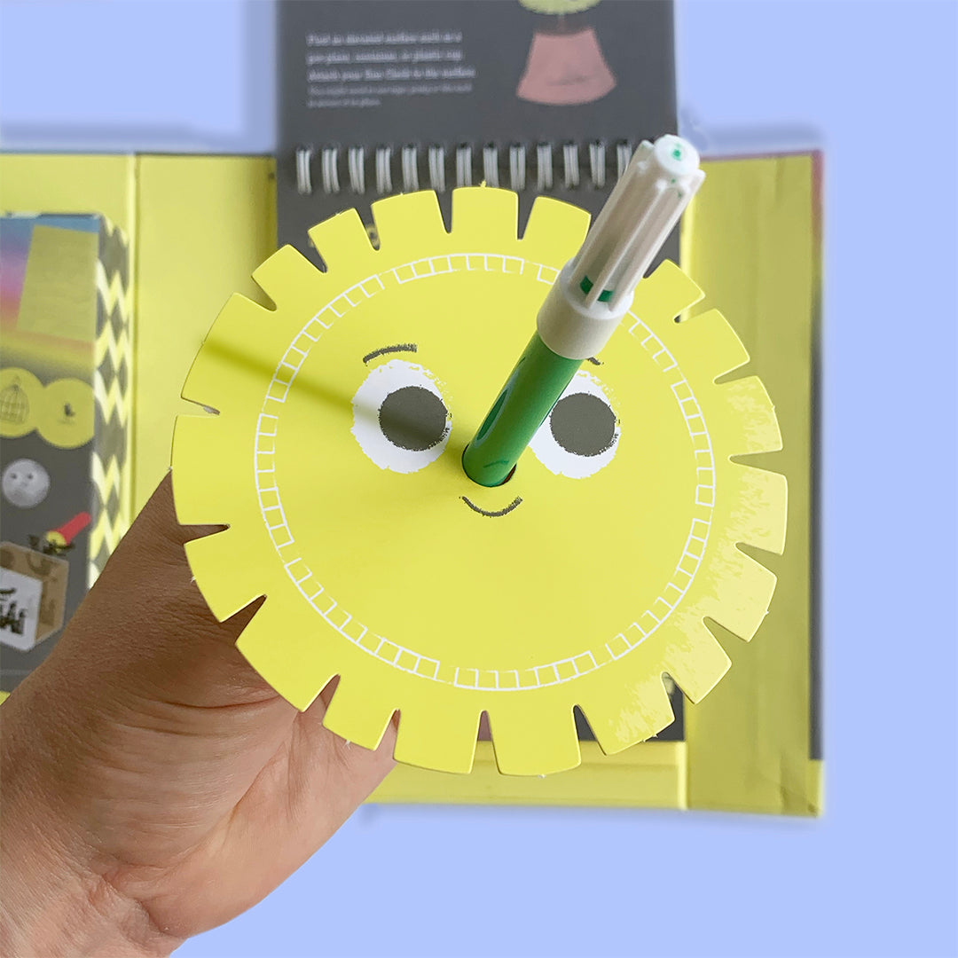Plantillas y discos intercambiables: Varios discos de cartón rígido con recortes para practicar sombras y efectos de luz.