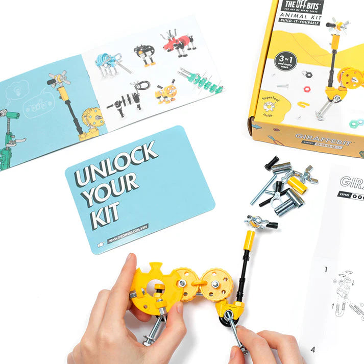 GiraffeBit es un kit de construcción que combina ingeniería y juego libre con un toque adorable: una jirafa robótica amarilla llena de personalidad.