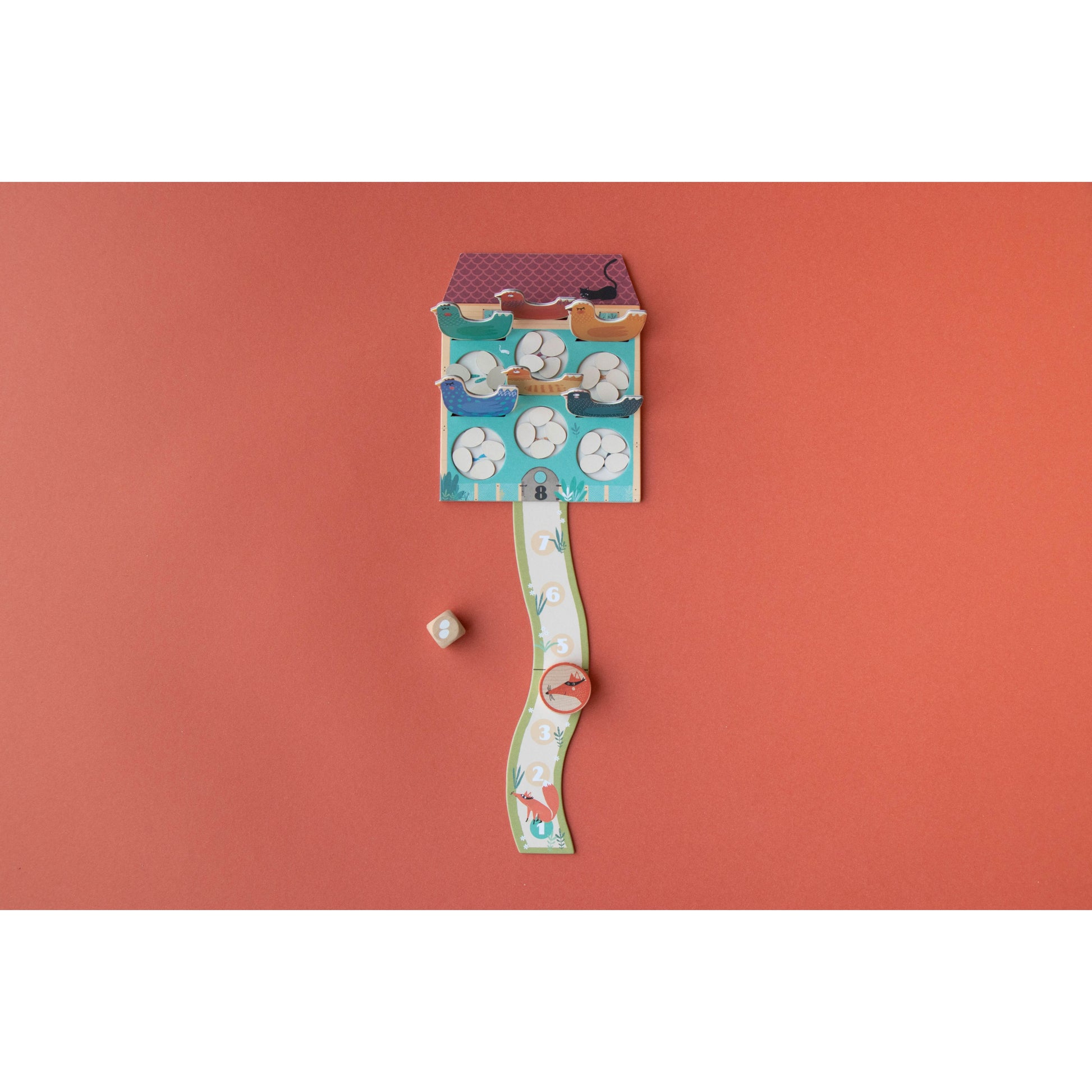 En este ágil juego de bolsillo, los jugadores se convierten en gallinas que, unidas, deben ocultar sus huevos y despistar al astuto zorro. Cada partida, de 5 a 10 minutos, propone retos visuales y cooperativos que hacen de Cluck, Cluck! The Fox! un imprescindible de viaje y sobremesas.