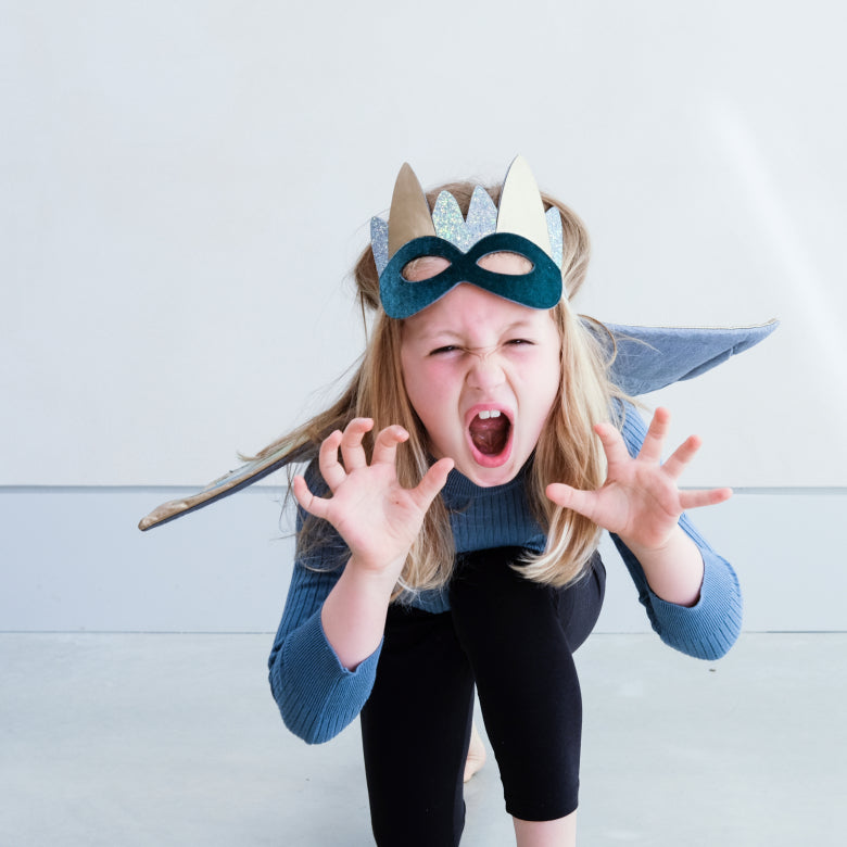 Conviértete en un auténtico dragón con la Máscara Dragón Verde y Dorada de Mimi & Lula. Su diseño con terciopelo verde, detalles en dorado y toques de glitter multicolor la hacen perfecta para desatar la imaginación en fiestas, disfraces o juegos de aventuras.