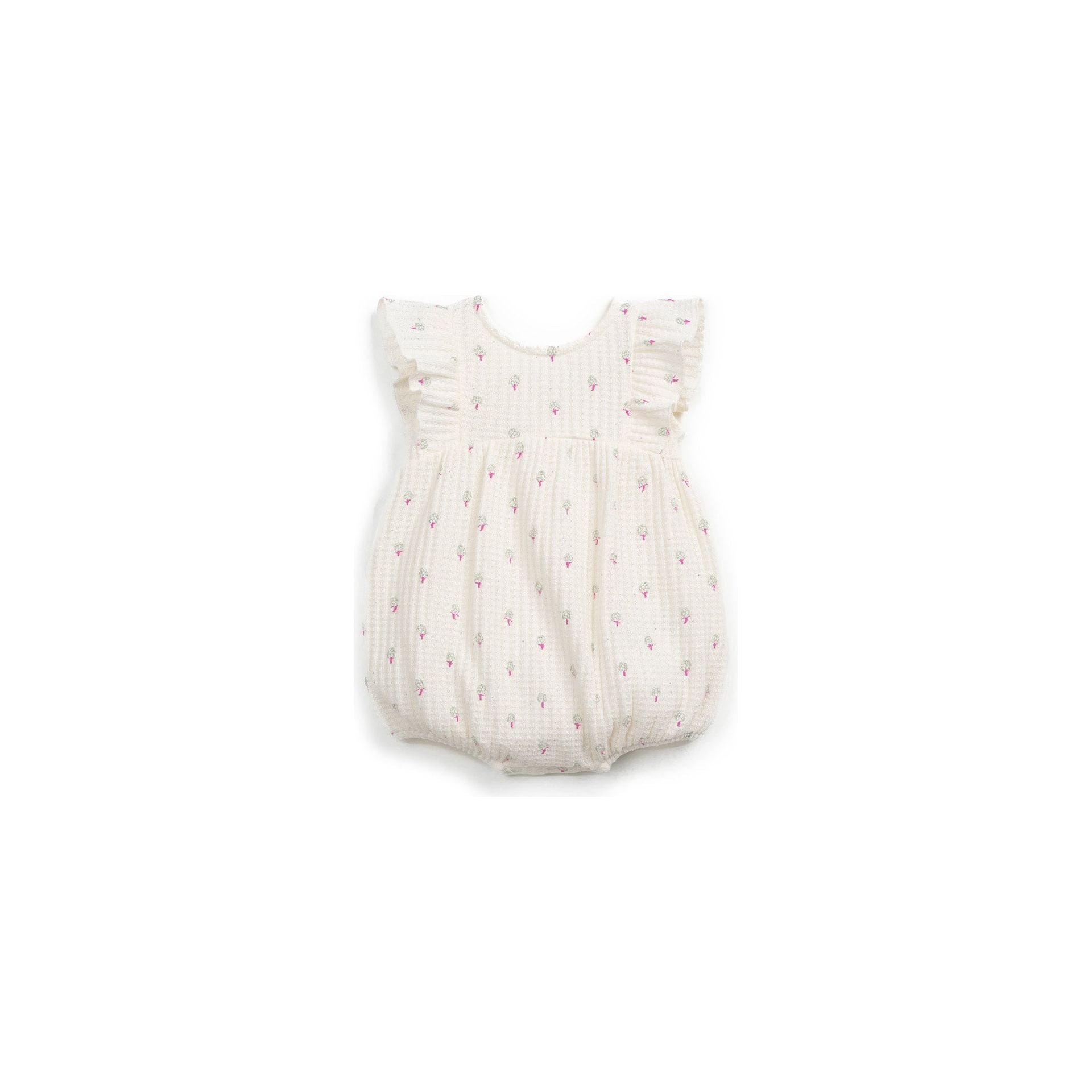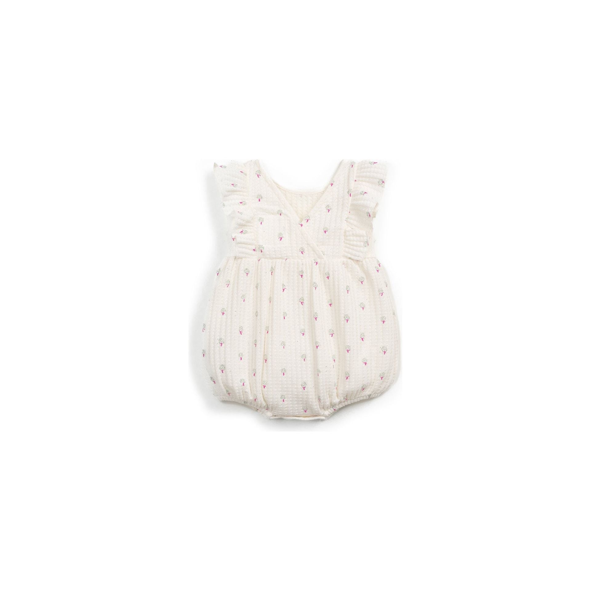 Este mono de la marca Play Up está confeccionado en una suave mezcla de algodón y lino, ofreciendo una prenda cómoda y fresca para los más pequeños. Su diseño presenta un corte holgado, aportando un toque elegante y veraniego al vestuario del bebé.