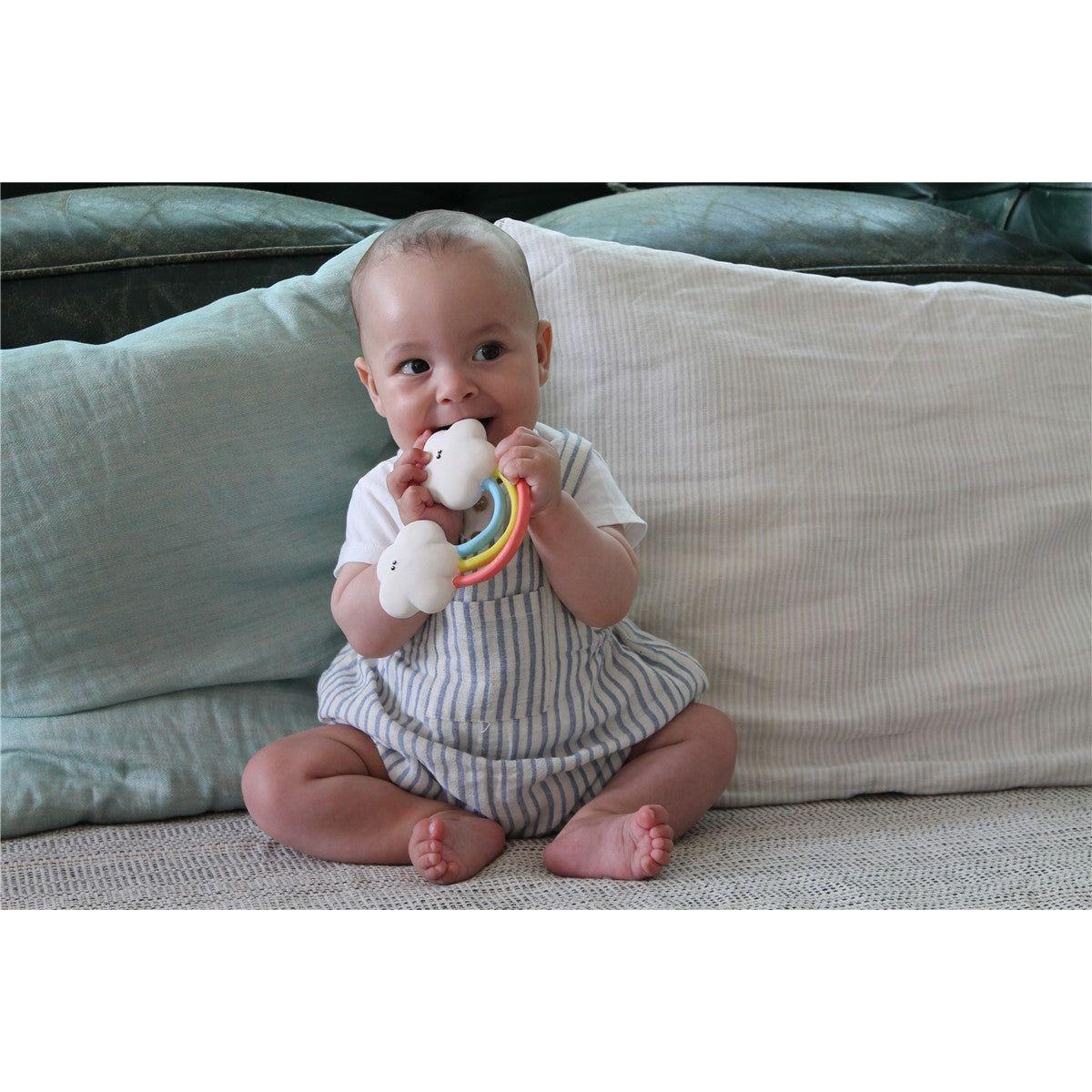 El mordedor Arco Iris de Lanco es un juguete sensorial diseñado para aliviar las encías de tu bebé durante la dentición. Fabricado artesanalmente con caucho 100% natural y pintado a mano con pigmentos de calidad alimentaria, este mordedor combina seguridad, sostenibilidad y diseño atractivo para estimular los sentidos del bebé desde el nacimiento.