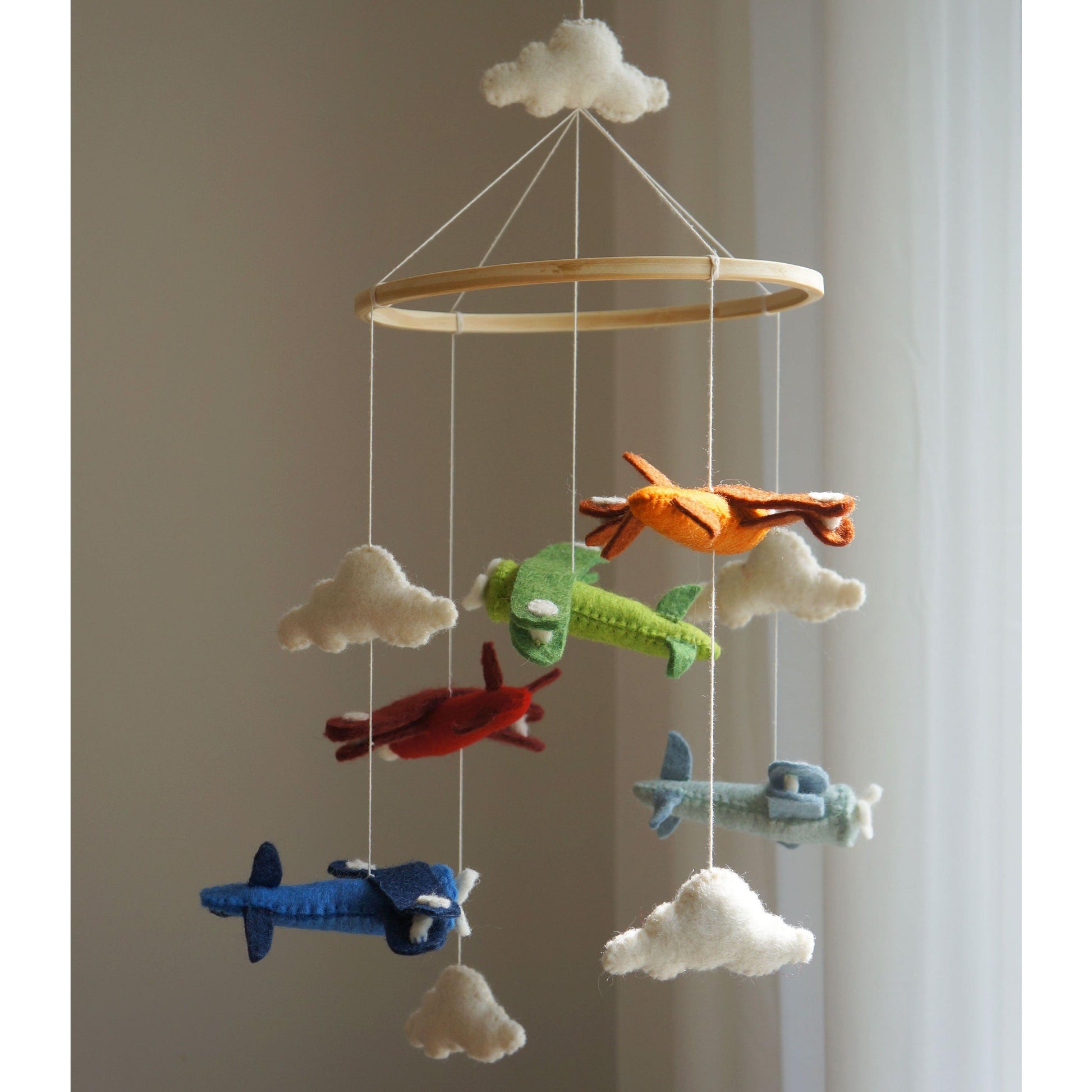 El Móvil de Aviones de Fieltro de Gamcha es una pieza artesanal encantadora que aporta un toque lúdico y sereno a cualquier habitación infantil. Confeccionado a mano en Nepal por artesanas locales, este móvil presenta pequeños aviones de fieltro en tonos mixtos suspendidos de un aro metálico, acompañados de suaves detalles que evocan un cielo lleno de aventuras. Su diseño minimalista y elegante lo convierte en una pieza decorativa ideal para cualquier espacio.