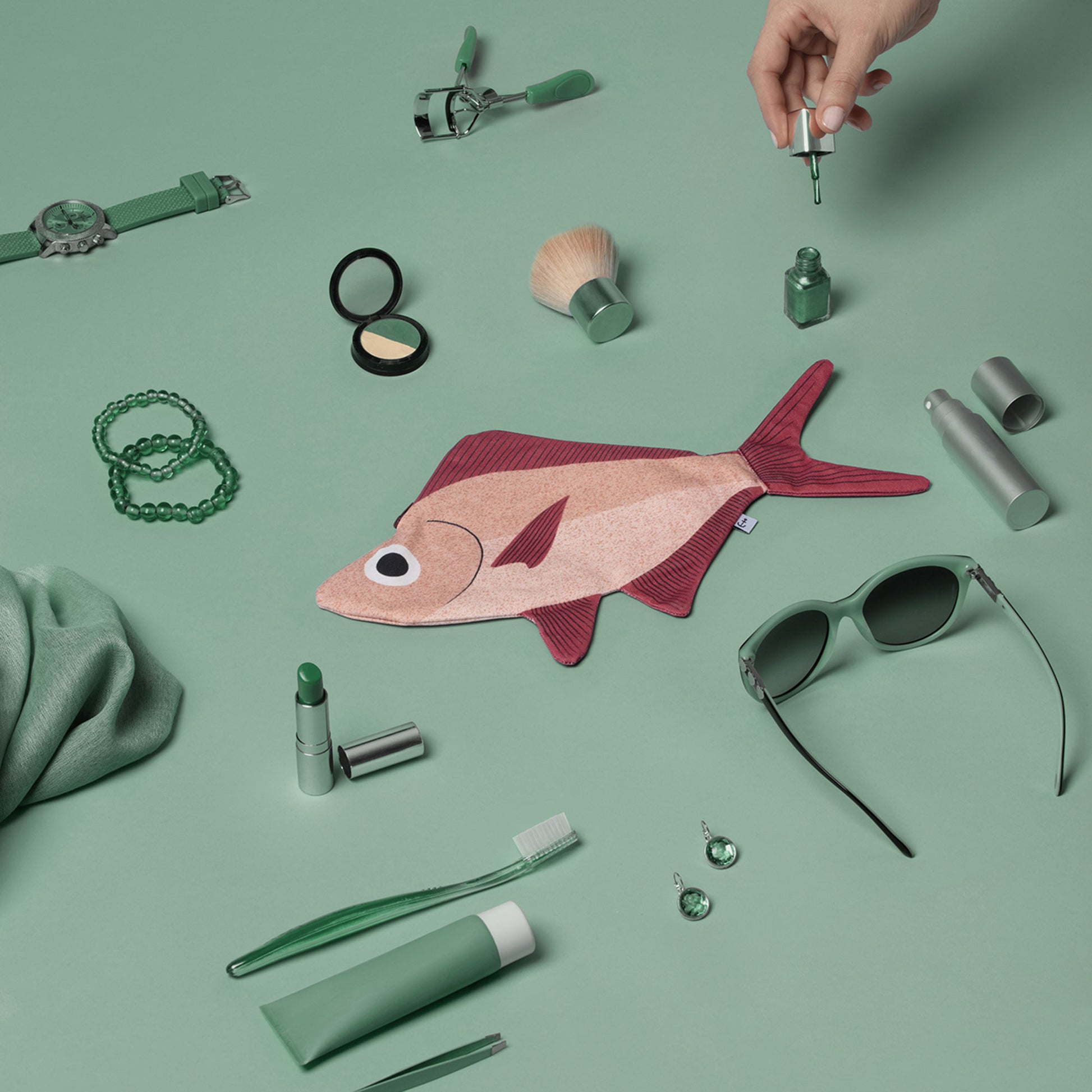 El Alfonsino es un neceser con forma de pez, confeccionado a mano en España por Don Fisher. Inspirado en el pez alfonsino del Mar de Japón, destaca por su diseño en tonos rosados y rojos, y un interior ilustrado que simula las espinas del pez. Su forma única y detalles artesanales lo convierten en un accesorio funcional y encantador.