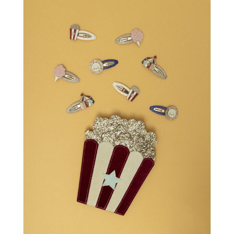 ¡Bienvenidos al espectáculo! Este set de horquillas con diseño de leones y carpas de circo está lleno de color, purpurina y diversión. El accesorio ideal para peinados que roban miradas.