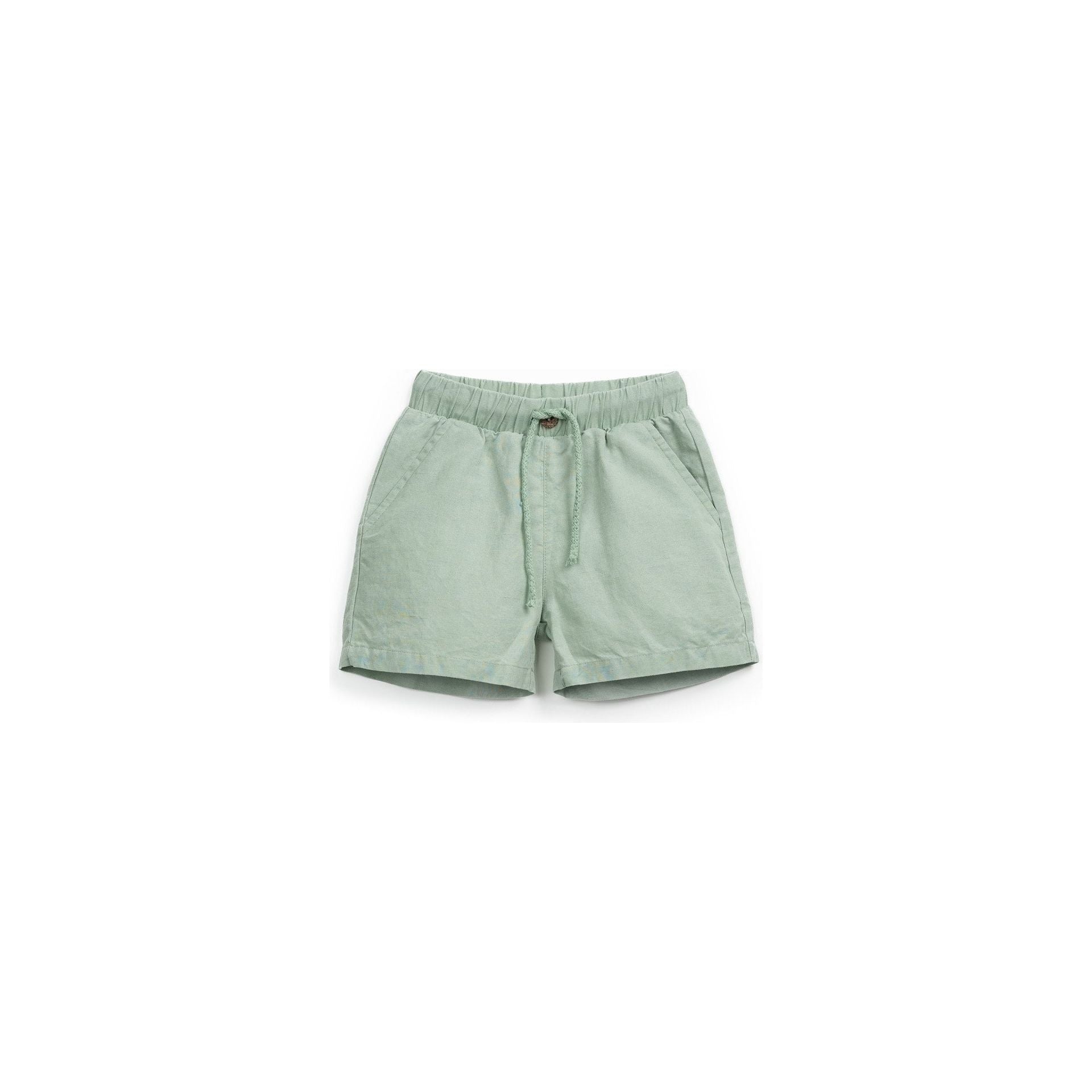 Pantalón Corto de Tela  Verde con Botón de Coco Decorativo – Play Up