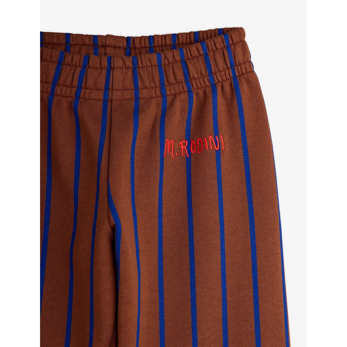 Una prenda con carácter para peques con estilo. Este pantalón jogger de Mini Rodini combina una base color chocolate con rayas verticales en azul eléctrico que alargan visualmente la silueta. Ideal para looks urbanos o deportivos, es cómodo, versátil y fabricado en algodón orgánico.