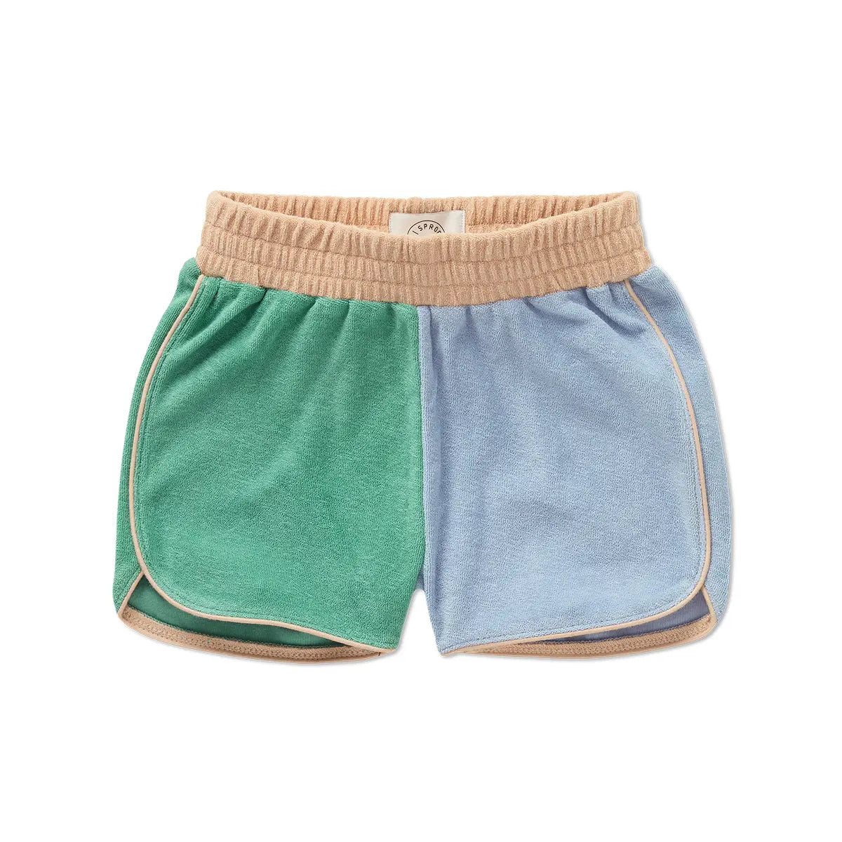 Pantalones Cortos Deportivos de Rizo Colourblock – Azul Niebla y Verde Botánico | Sproet & Sprout
