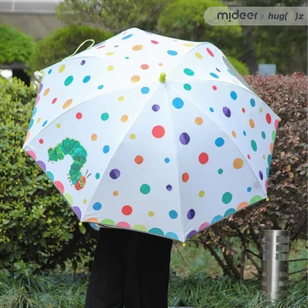 Protege a los peques de la lluvia con este encantador paraguas de Mideer diseñado con la icónica oruga de Eric Carle, combinando diversión y funcionalidad en un diseño portátil y visualmente atractivo.