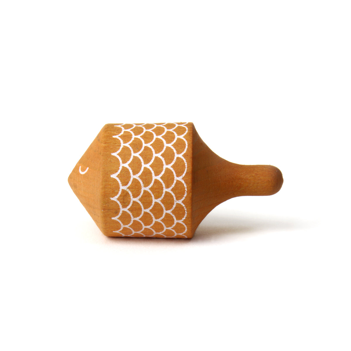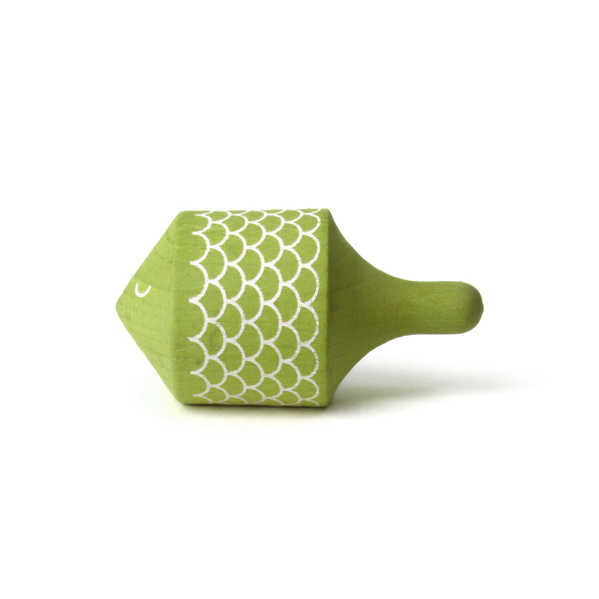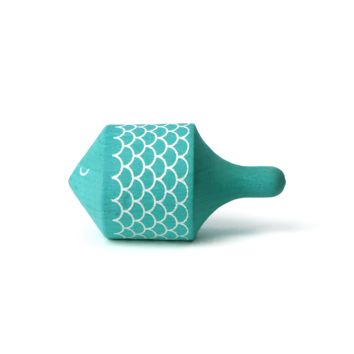La Peonza Fish de Londji reinventa el clásico juguete de madera con una forma de pez moderna y alegres colores. Solo tienes que darle un impulso con los dedos y verás cómo gira con sorprendente estabilidad.