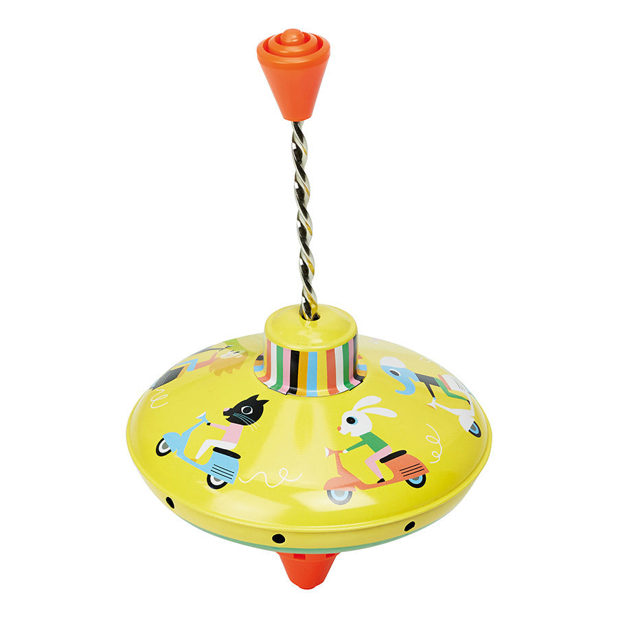 Gira y deslízate a toda velocidad con esta clásica peonza de Vilac. Fabricada en metal con vistosos estampados, cada modelo tiene un dibujo diferente (motivos de divertidos animales y paisajes) y está disponible en varios colores. ¡Colecciónalas y compite para ver cuál gira más tiempo!