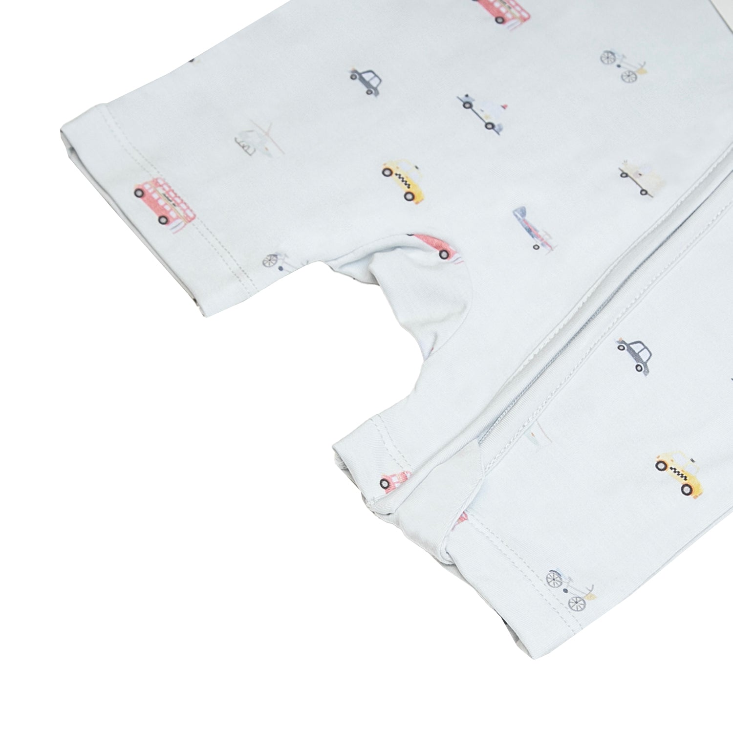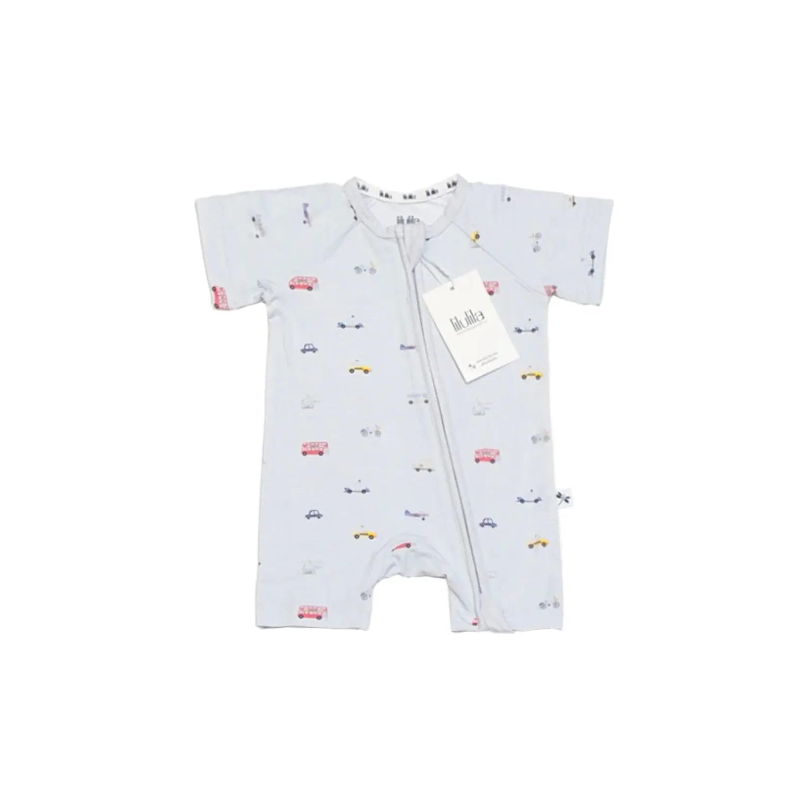El pijama corto Zippy Romper – Little Ride de Lilulila es perfecto para mantener a los más pequeños frescos y cómodos durante los meses más cálidos. Su diseño veraniego con manga corta y pantalón corto, junto con una cremallera frontal de doble dirección, lo convierte en una prenda práctica y fácil de poner.