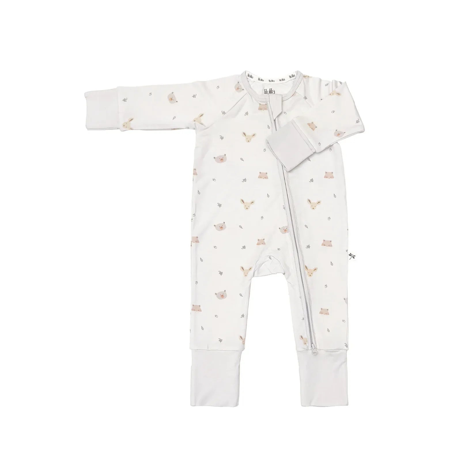 Con estampado de pequeños animales, manga larga y cremallera frontal, es un básico práctico y adorable para el día a día.