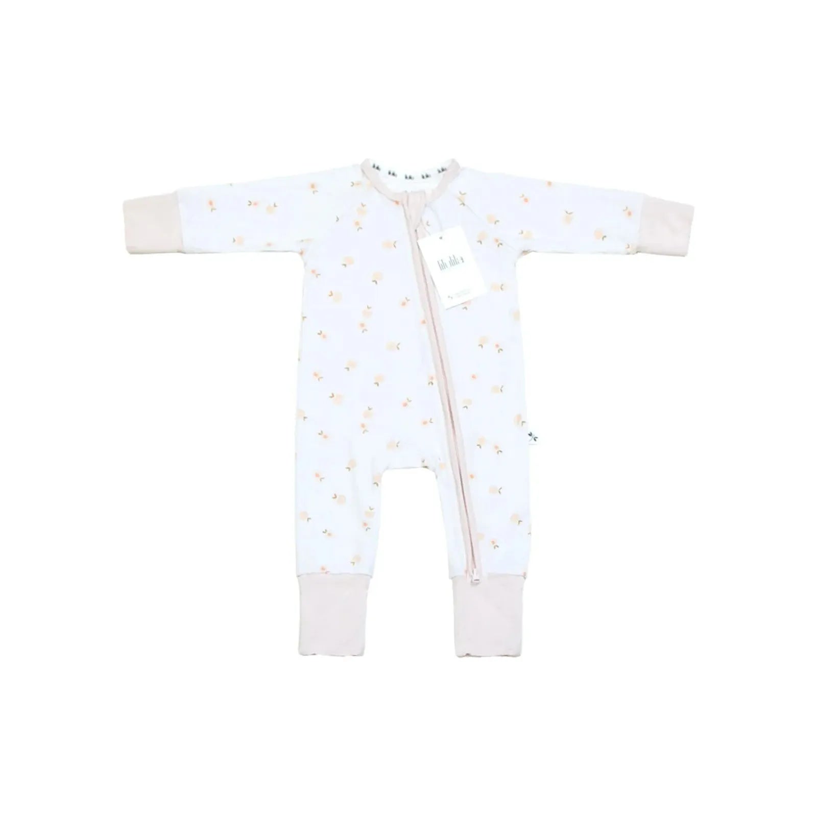 El Zippy Romper Peaches de Lilulila es un pijama largo de una pieza con cremallera, ideal para el descanso diario del bebé. Su estampado de pequeños melocotones en tonos suaves sobre fondo blanco lo convierte en una prenda dulce, alegre y perfecta para cualquier momento del año.