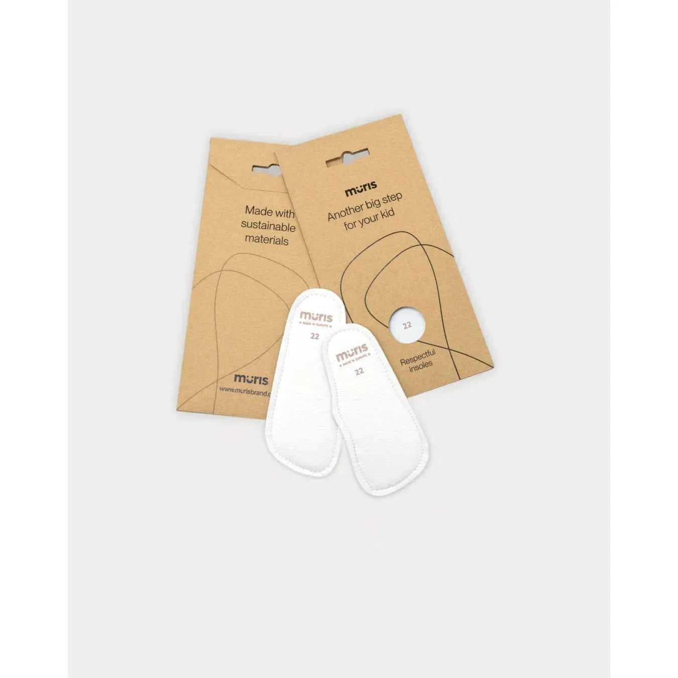 Las plantillas de recambio de Muris están pensadas para acompañar el crecimiento y el uso diario del calzado infantil, proporcionando una sensación de frescura, confort y transpirabilidad. Están diseñadas para adaptarse a los modelos de la marca, ofreciendo el mismo nivel de respeto por el desarrollo natural del pie y el compromiso con la sostenibilidad.