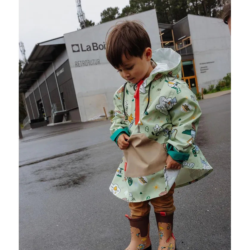 Este poncho impermeable con ilustraciones de bici, montaña y aventura es una declaración de intenciones: haga sol o llueva, la diversión no se cancela. Colorido, funcional y con un diseño pensado para moverse libremente, es perfecto para peques que no paran quietos ni en los días grises.