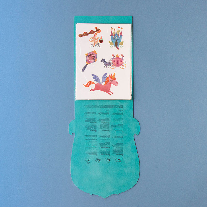 Convierte la piel en un reino de fantasía con 10 tatuajes temporales de princesas, coronas, castillos y estrellas brillantes. Ideal para soñadoras de 3 a 99 años, cumpleaños temáticos o cualquier ocasión real.