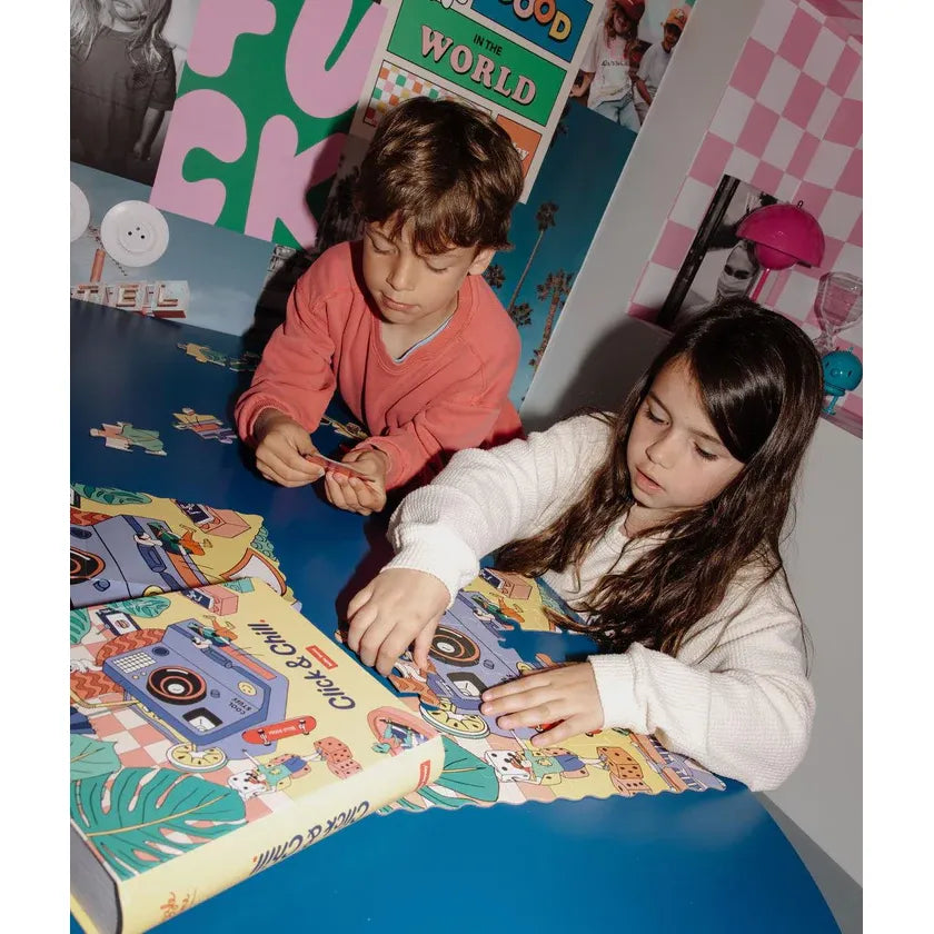 Relájate y disfruta del juego con el puzzle “Click & Chill” de Hello Hossy. Un homenaje al color, la diversión y la creatividad, protagonizado por una cámara gigante rodeada de personajes únicos y detalles llenos de humor. Con 36 piezas resistentes, es perfecto para estimular la concentración y la imaginación de los peques.