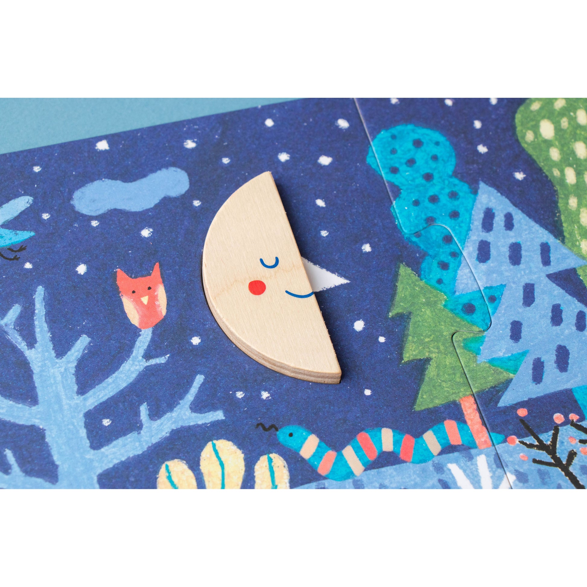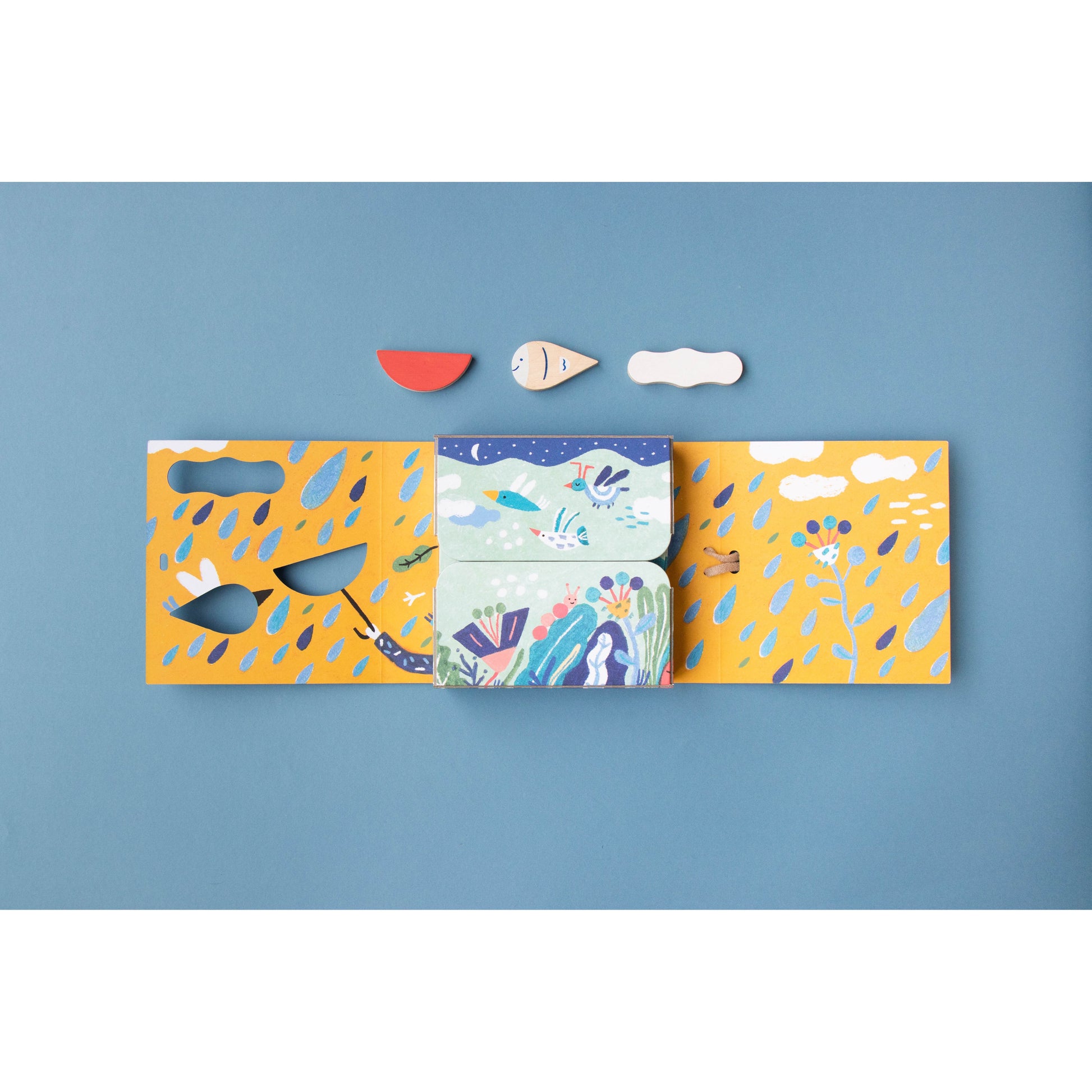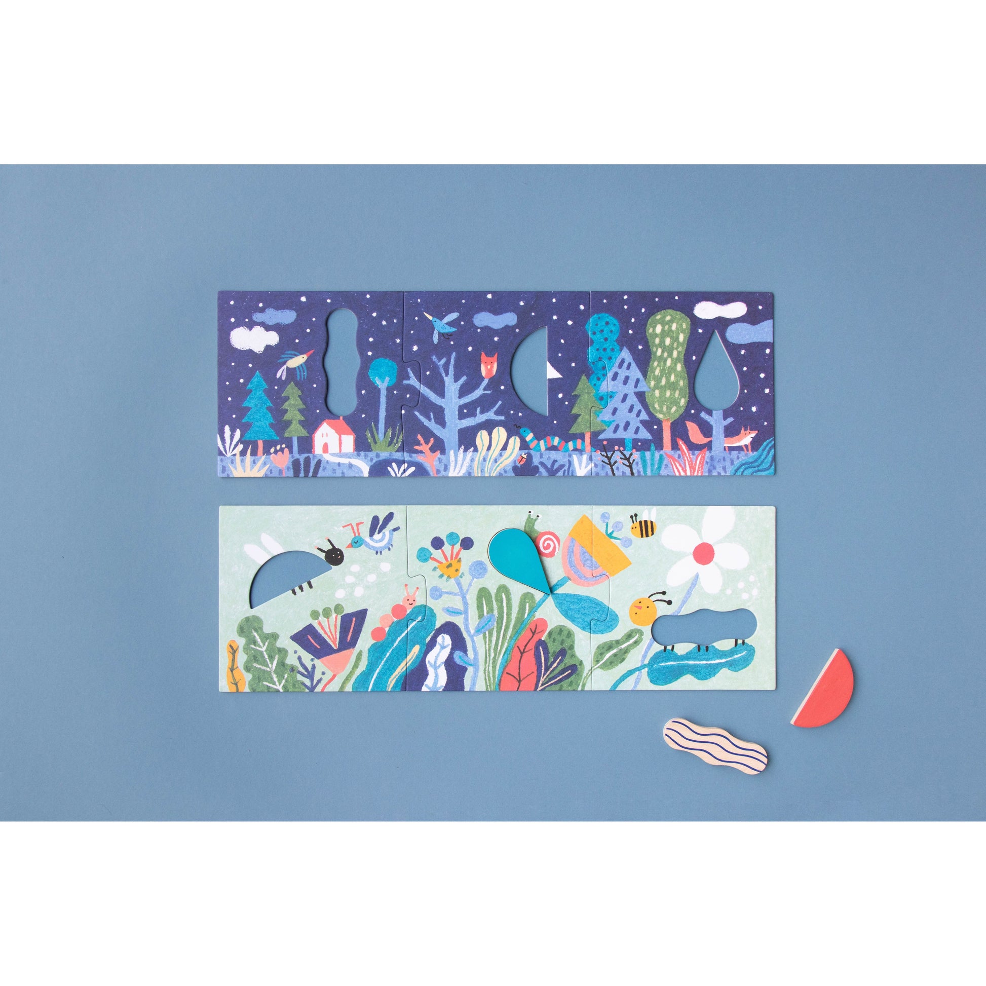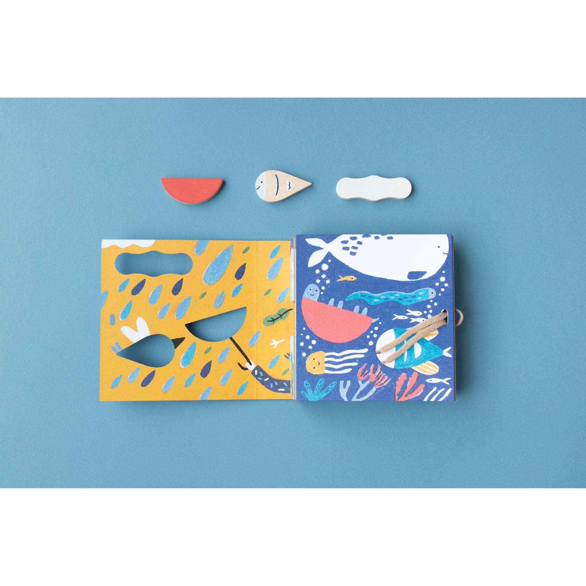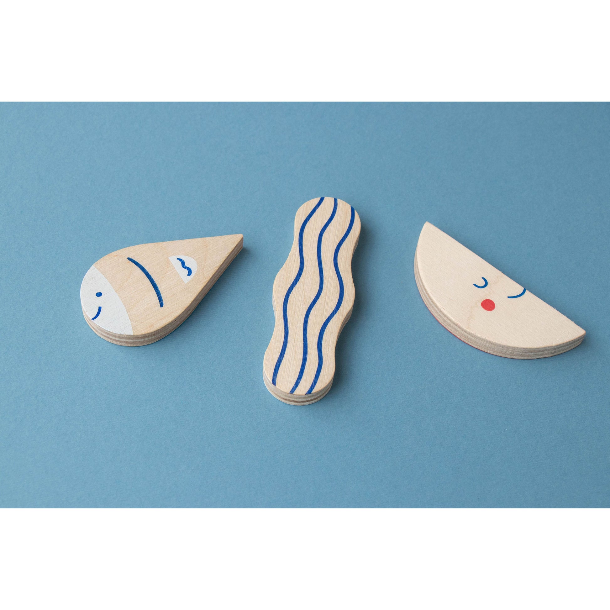 Imagine es un mini-puzzle multipropósito formado por 3 puzles de 3 piezas cada uno, que se encajan en la tapa magnética de su cajita de madera. Una vez montadas, las figuras (barco, pez y nube) se desprenden para jugar libremente e inspirar infinitas aventuras: navegaciones, exploraciones submarinas o viajes por el cielo.