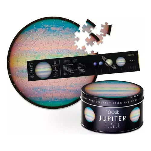 Explora el espacio con el Puzzle NASA 100 Piezas en Lata de Crocodile Creek. Este rompecabezas circular de 12 pulgadas de diámetro presenta impresionantes imágenes de la NASA, permitiéndote descubrir la belleza y el misterio de la Tierra, la Luna, el Sol o Júpiter. Diseñado para inspirar la curiosidad y el aprendizaje, es perfecto para niños y adultos por igual.