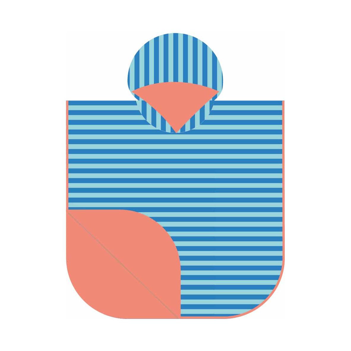 Un poncho ligero y absorbente diseñado para los más pequeños aventureros del agua. El Poncho “Ocean” presenta rayas horizontales en tonos azul marino y celeste, ribetes en coral suave y forro interior lila, ofreciendo una prenda versátil para secarse, abrigarse y cambiarse con facilidad tras la playa, la piscina o la bañera.