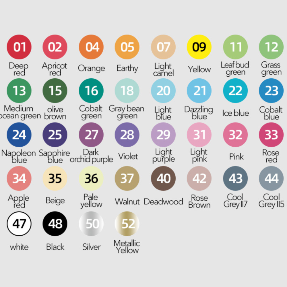 Colores incluidos: 36 tonos (vivos y metálicos)