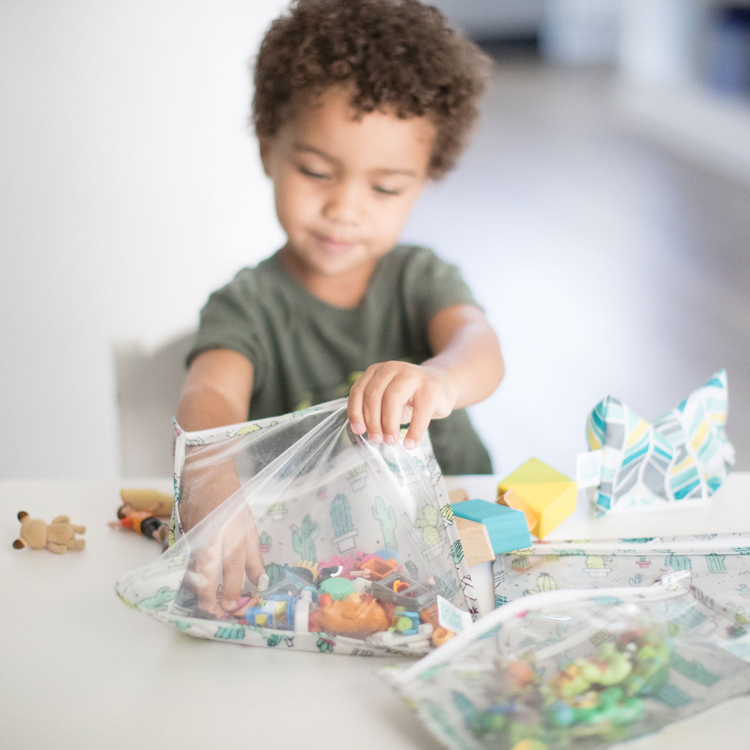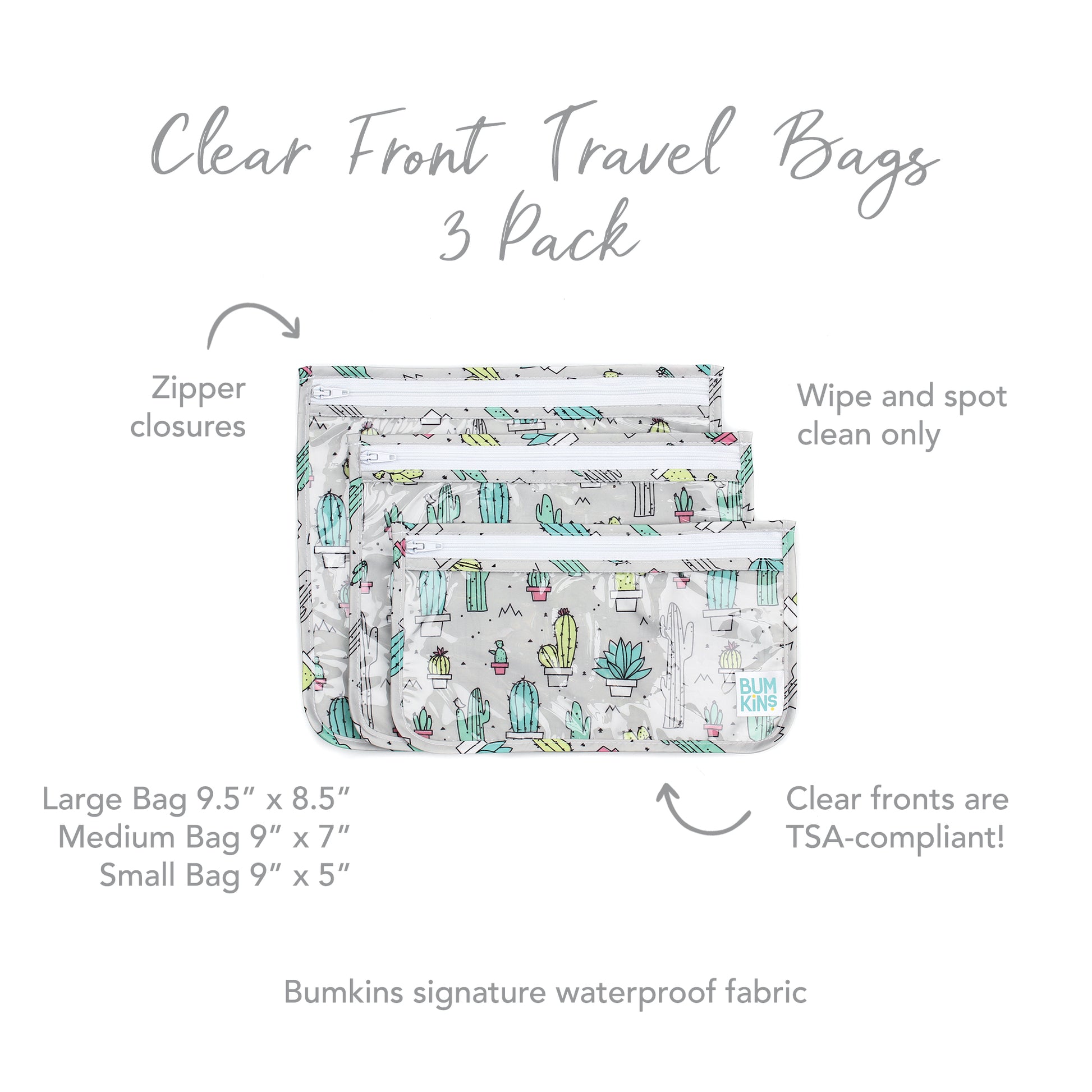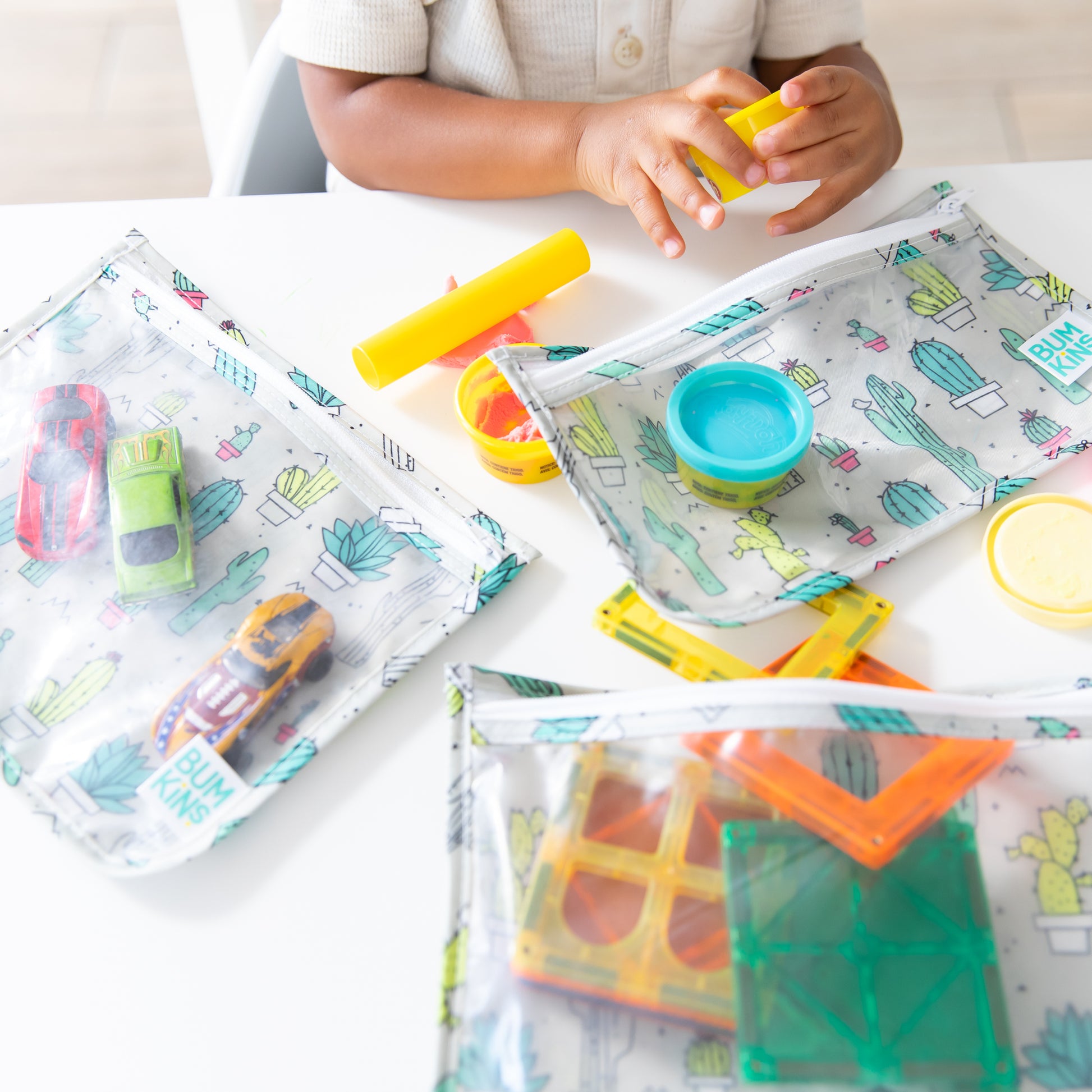 Este set de neceseres con frontal transparente de Bumkins es ideal para organizar pequeños objetos tanto en casa como de viaje. Con un diseño alegre de cactus y fabricados con materiales seguros y duraderos, permiten ver su contenido fácilmente. Perfectos para artículos de higiene, lápices, juguetes pequeños, cables o lo que necesites tener a mano.