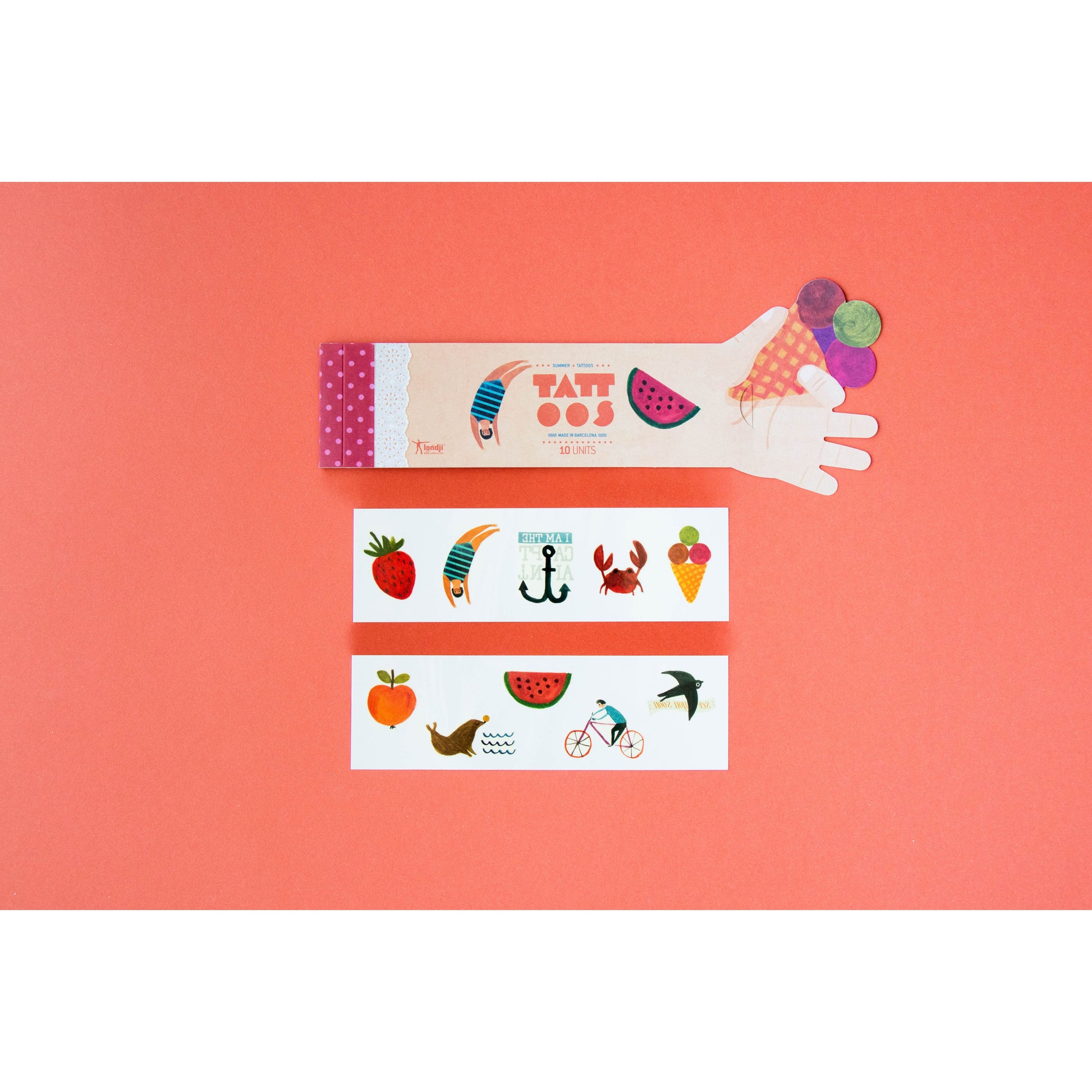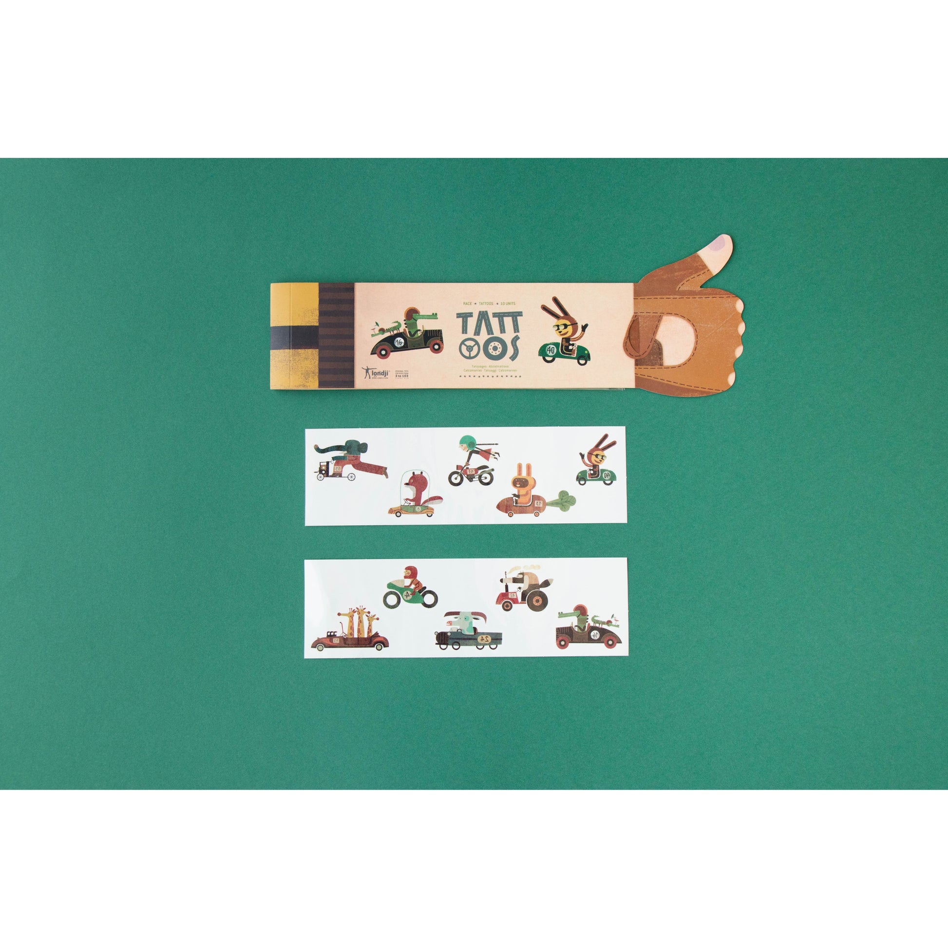 Descubre la colección de 10 tatuajes temporales diseñados para explorar mundos de fantasía: con motivos de Circus, Pirates, Race, Ocean, Medieval, Dinos, Ballerine, Magique, Nature, Summer y Bikes. Cada set viene en un práctico sobre-cinturón que se ajusta a tu muñeca, perfecto para fiestas, viajes o cualquier día de juego.