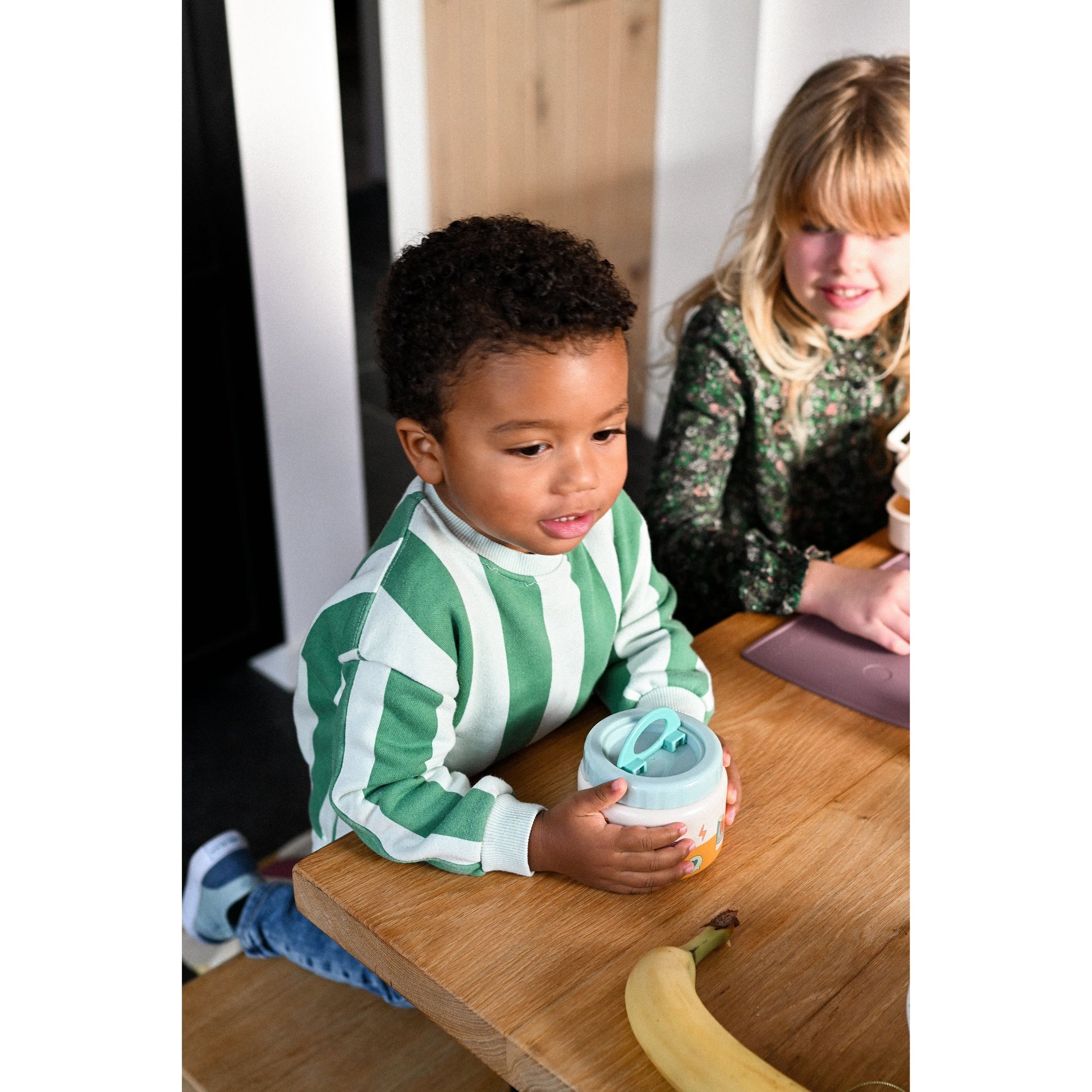 Nuestro termo de 350 ml es la solución perfecta para mantener las comidas y snacks de tu hijo a la temperatura ideal mientras está fuera de casa. Con una tapa de apertura fácil diseñada para manos pequeñas y un cuerpo de acero inoxidable, ofrece comodidad y durabilidad en un formato compacto.