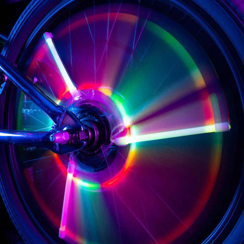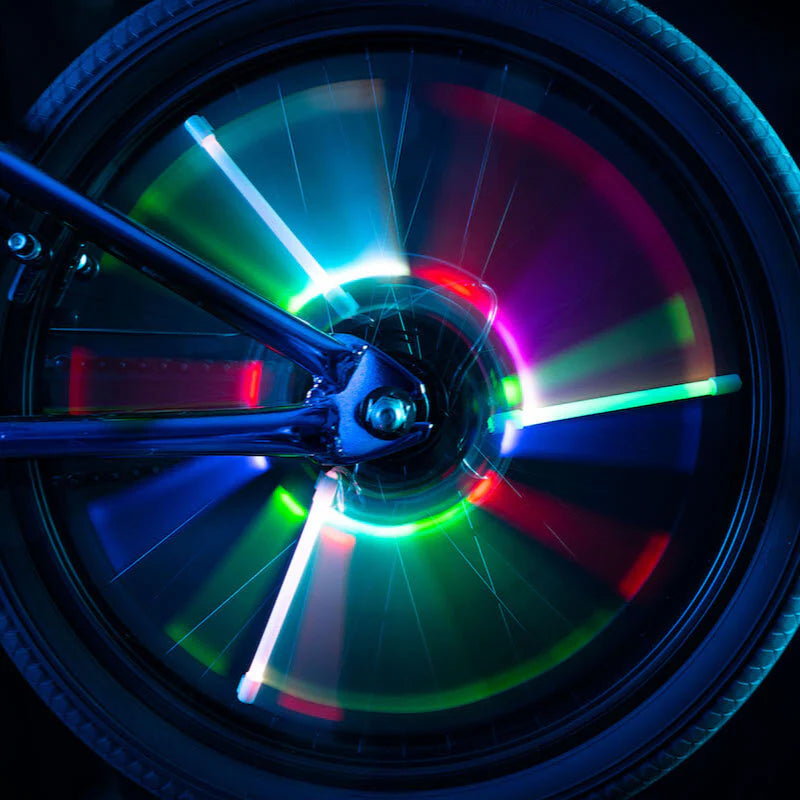 Los Spoke Tube Light de Brightz incluyen tres tubos LED multicolor que se fijan fácilmente a los radios de la bici para crear un efecto luminoso vibrante que va cambiando de color mientras pedaleas.