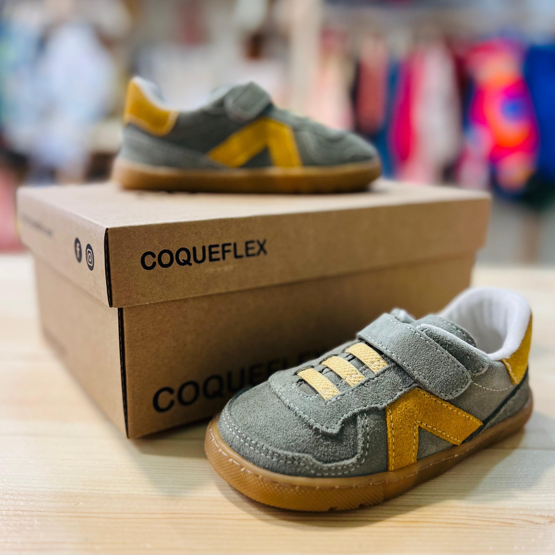 Zapatillas Barefoot Serraje Verde Oliva & Mostaza | COQUEFLEX